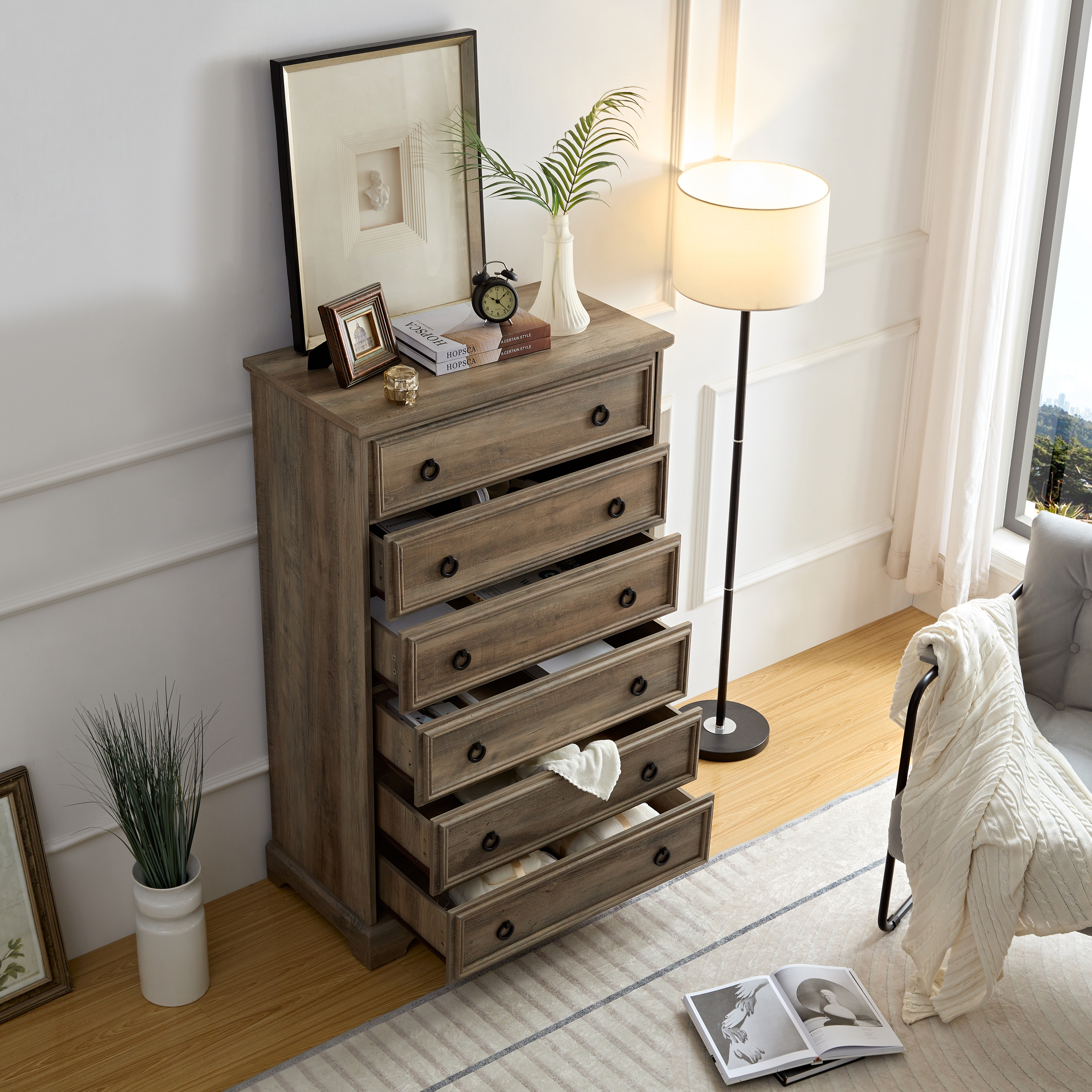 Product Name:Modern 6 Drawer Dresser, Dressers for Bedroom, Tall Chest of Drawers Closet Organizers & Storage Clothes - Easy Pull Handle, Textured Borders Living Room, Hallway,L 29.53''*W15.75''*H48.03''