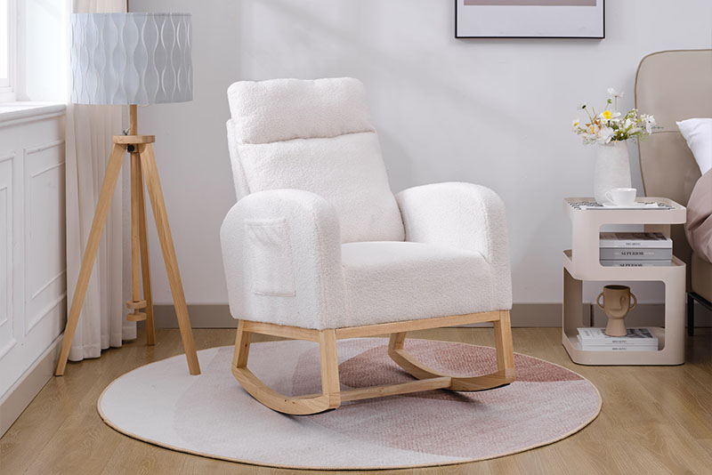 Modern Accent Rocking Chair Rocking Chair With Solid Wood Legs, Upholstered Nursery Glider Rocker, Comfy Armchair With Side Pocket, Living Room Lounge Arm Chair With High Backrest NO TEMU