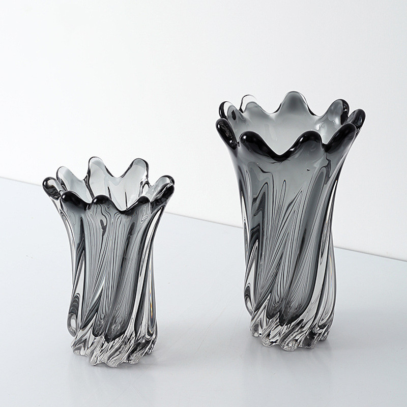 Modern American Living Room Petal Mouth Glass Vase Grey