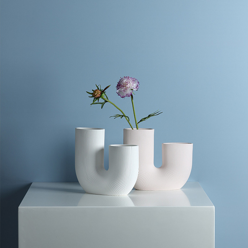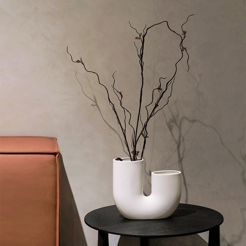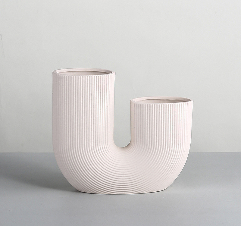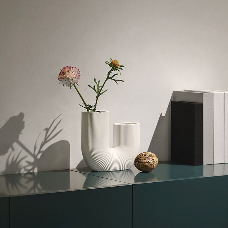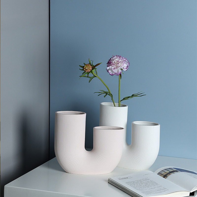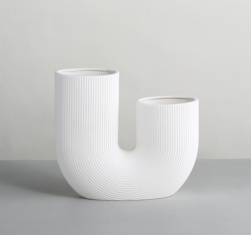 Modern And Simple U-Shaped Geometric Striped Ceramic Vase Ornaments Dry Flower Arranging Device Home Desktop Soft Decoration