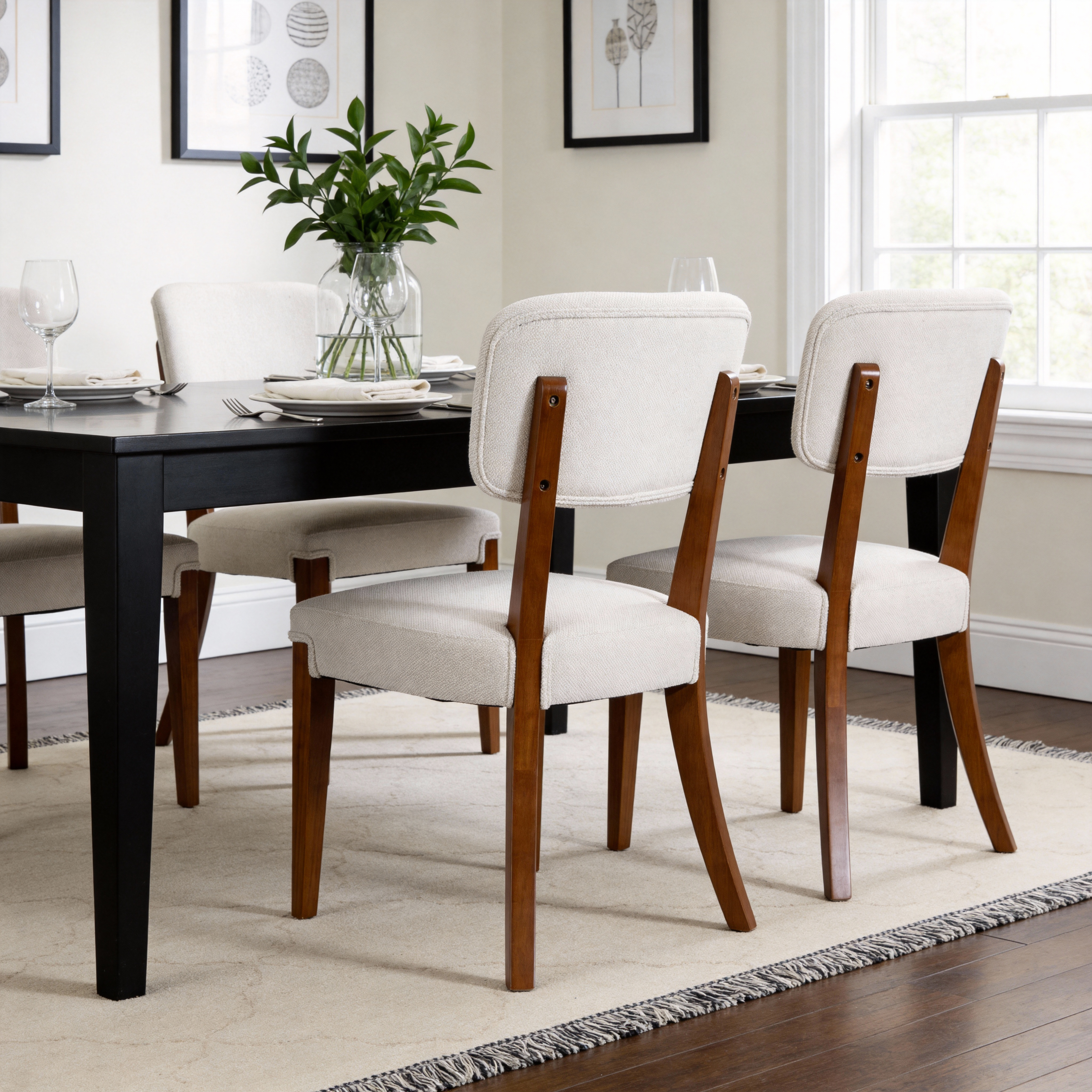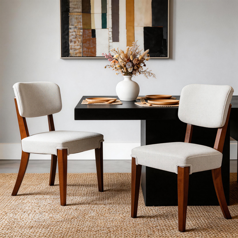 Product Name:Modern Armless Dining Chairs Set of 2, Beige, Contemporary Side Chairs with Wood Legs - Versatile Accent Chairs for Dining Room, Kitchen, or Living Room