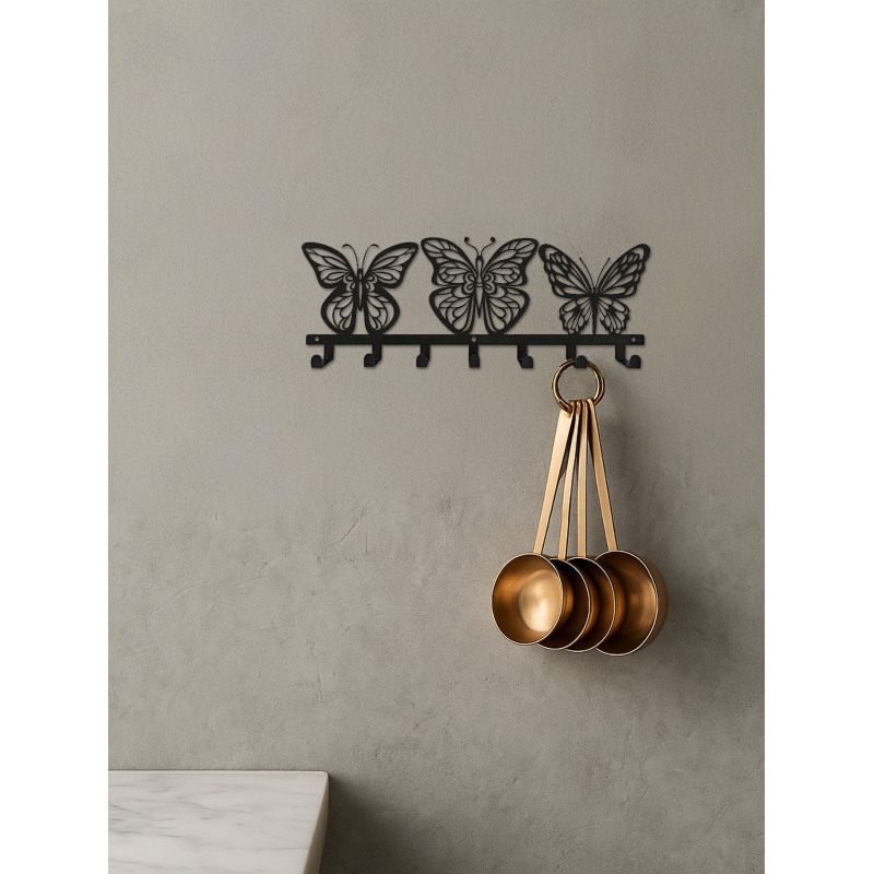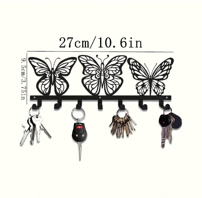 1 piece Modern Butterfly Metal Key Holder: Luxury Hand-made Iron Art with 7 Hooks, Wall Storage, Rust-Proof, Entrance Decoration, Fashionable for Living Room and Office, Space-Saving Key Hooks, Decorative Wall Art Wall Sculptures.Utility Hooks