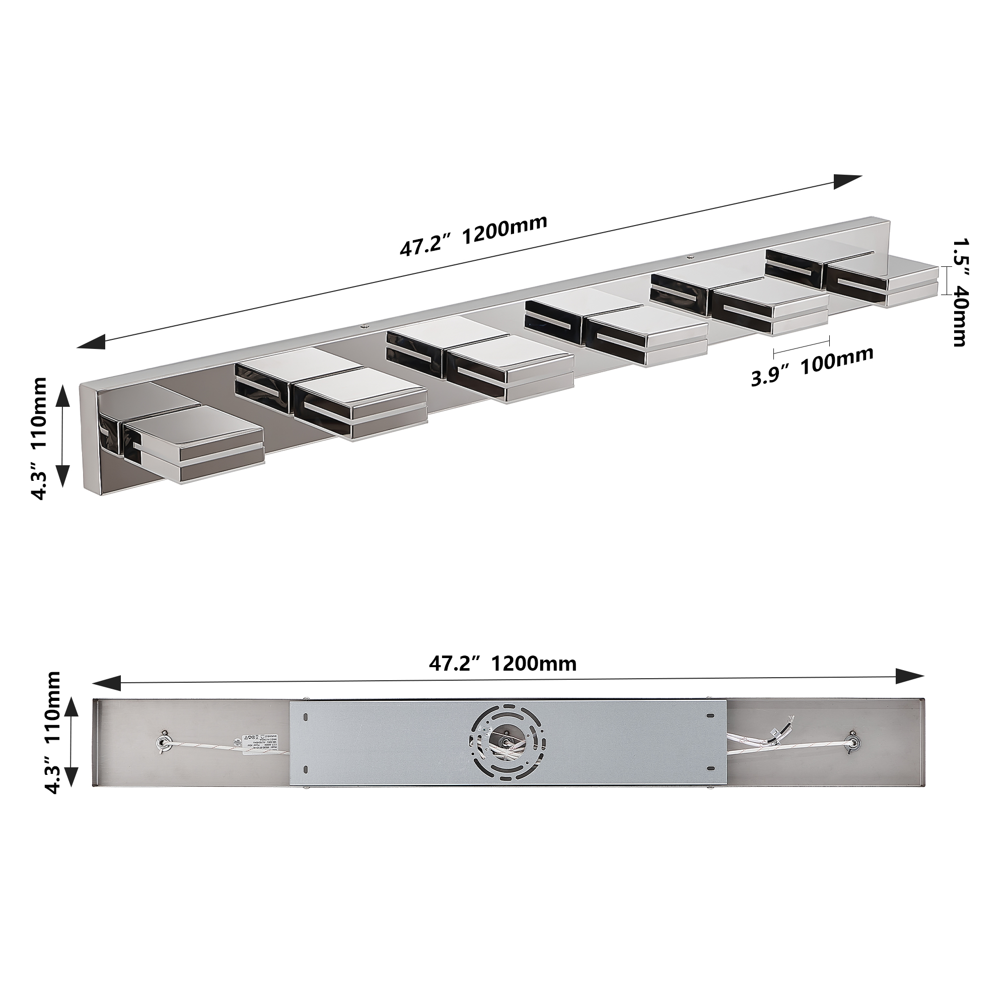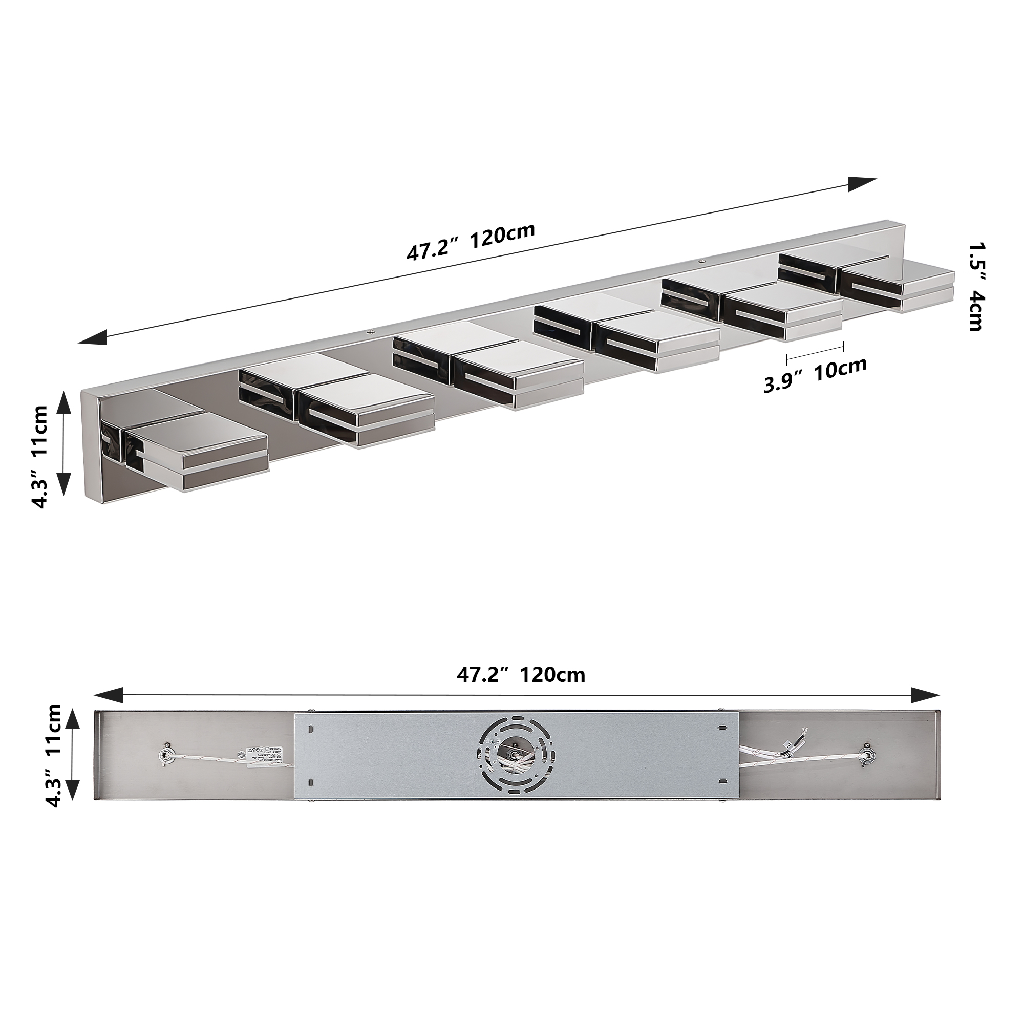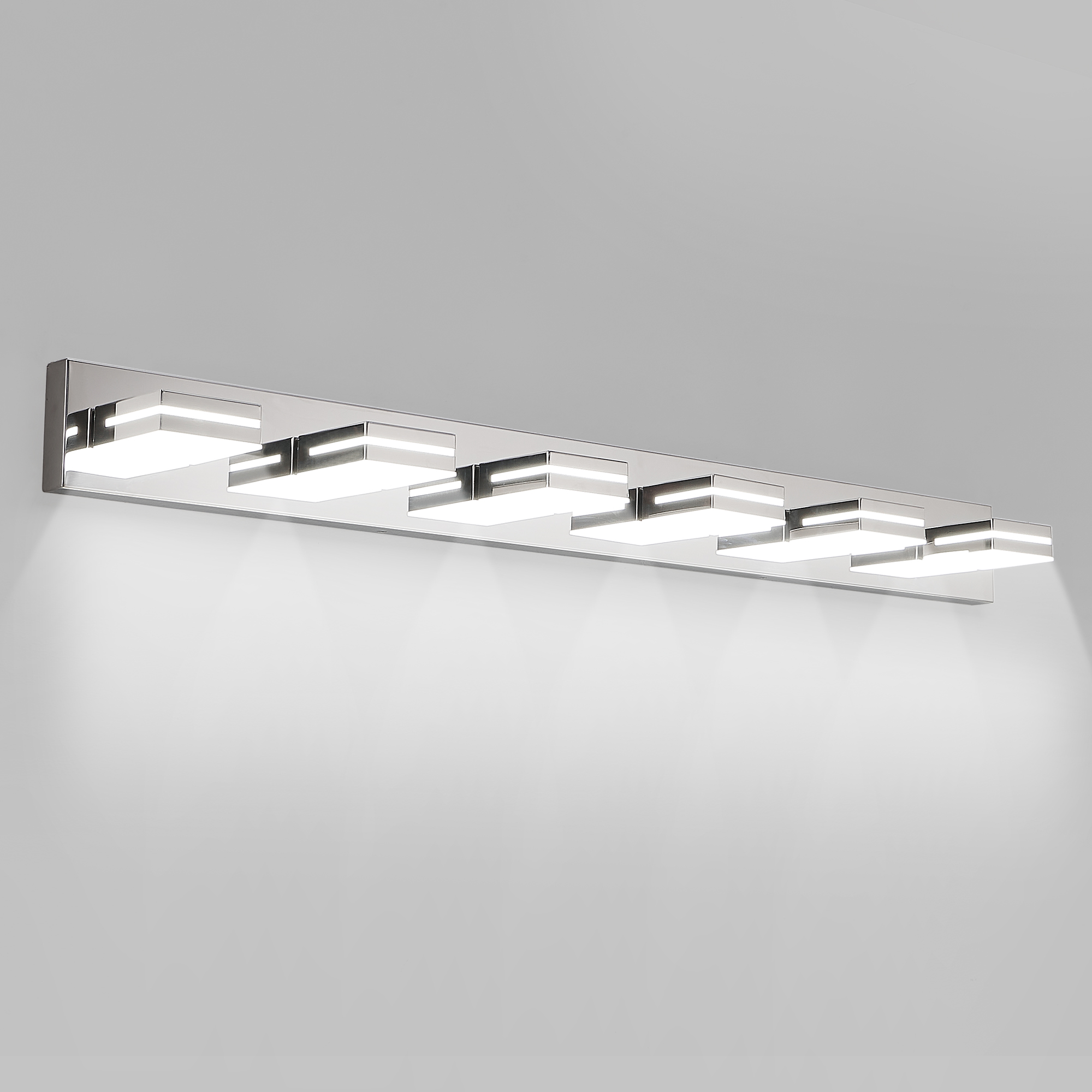 Modern minimalist design:The chrome body paired with geometric lamp heads is stylish and atmospheric, suitable for various modern decoration styles.Efficient LED lighting:Built in high brightness LED light source, providing sufficient and soft lighting, energy-saving and environmentally friendly, with a long service life.Multi head layout, uniform lighting:6 lamp head designs ensure even distribution of light, making it perfect for lighting needs in bathroom mirrors or makeup areas.Durable material:Made of high-quality metal material, rust and corrosion resistant, durable and suitable for use in high humidity environments such as bathrooms or toilets.Easy to install:Equipped with simple installation accessories, it is convenient and fast to complete the installation without complex operations.