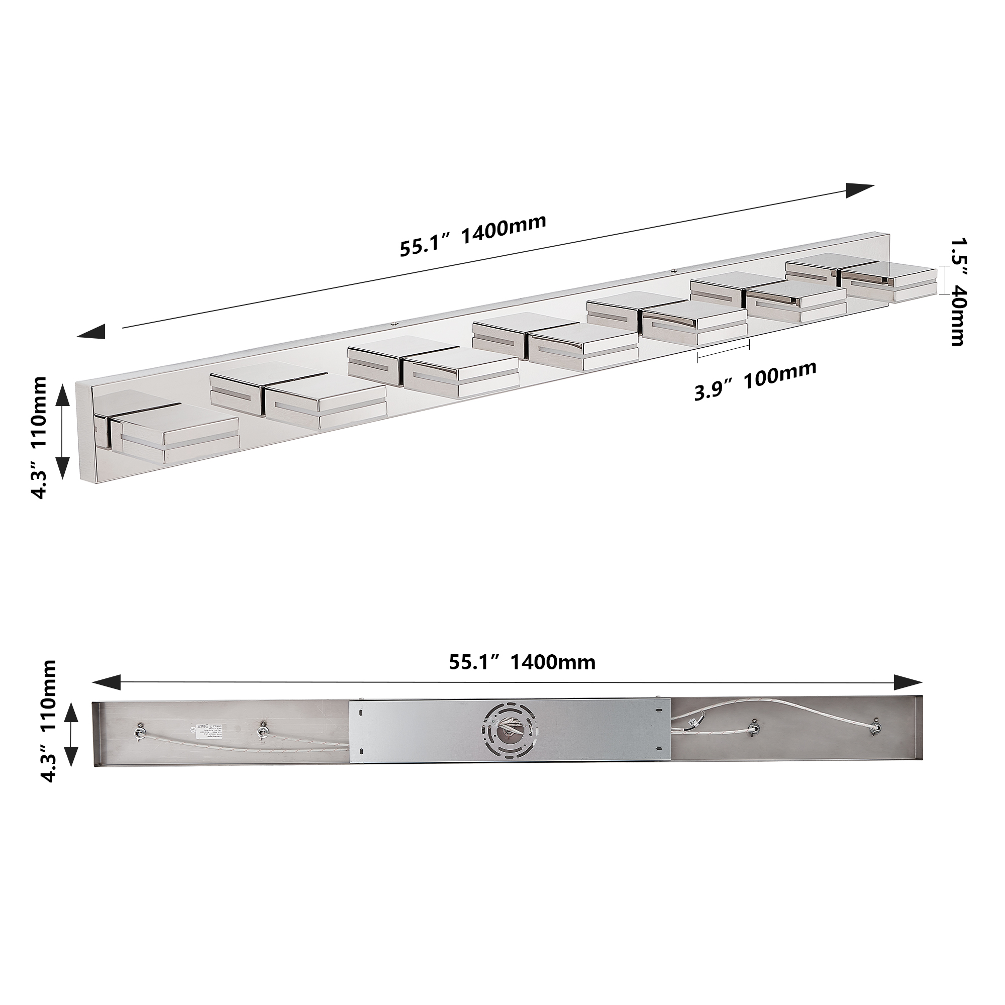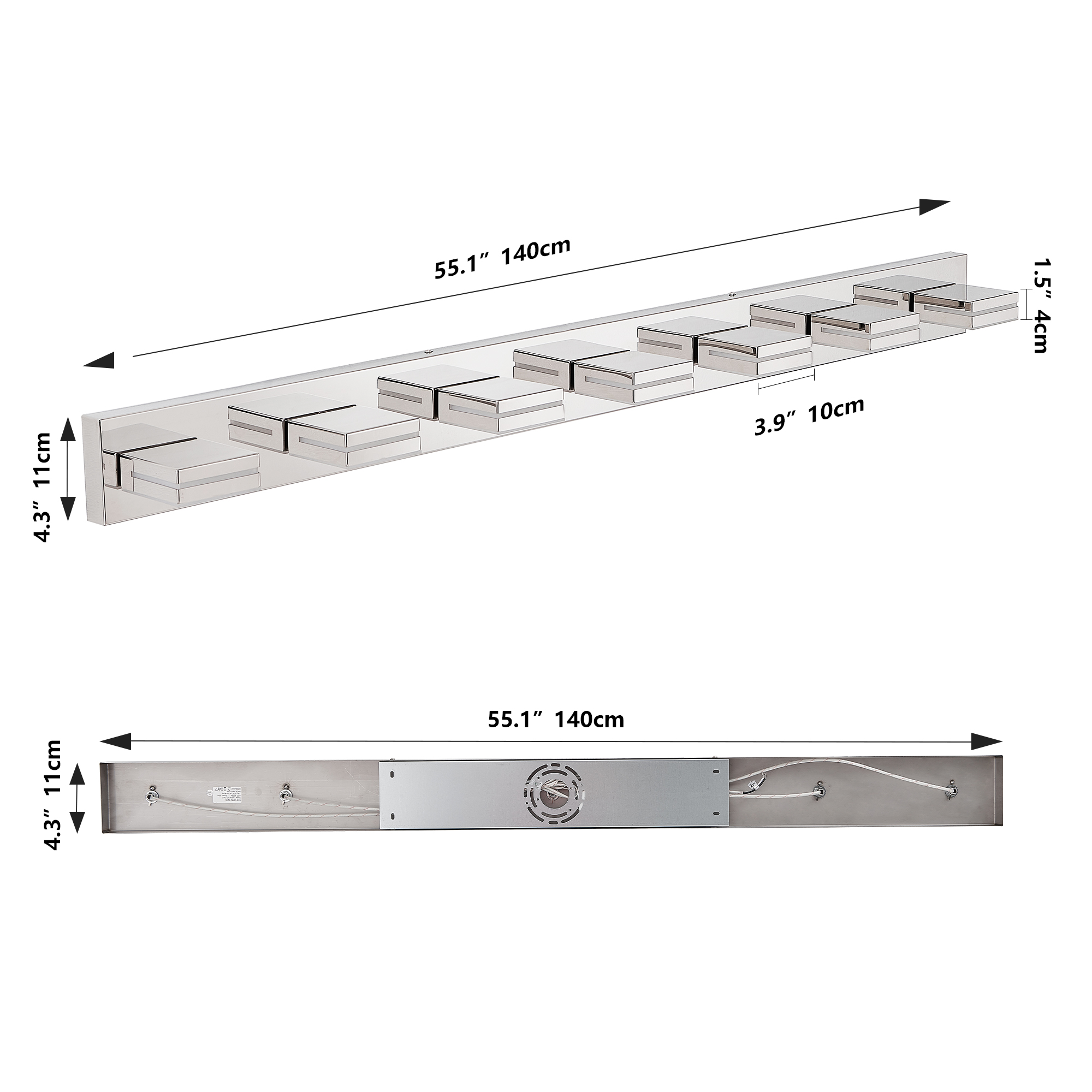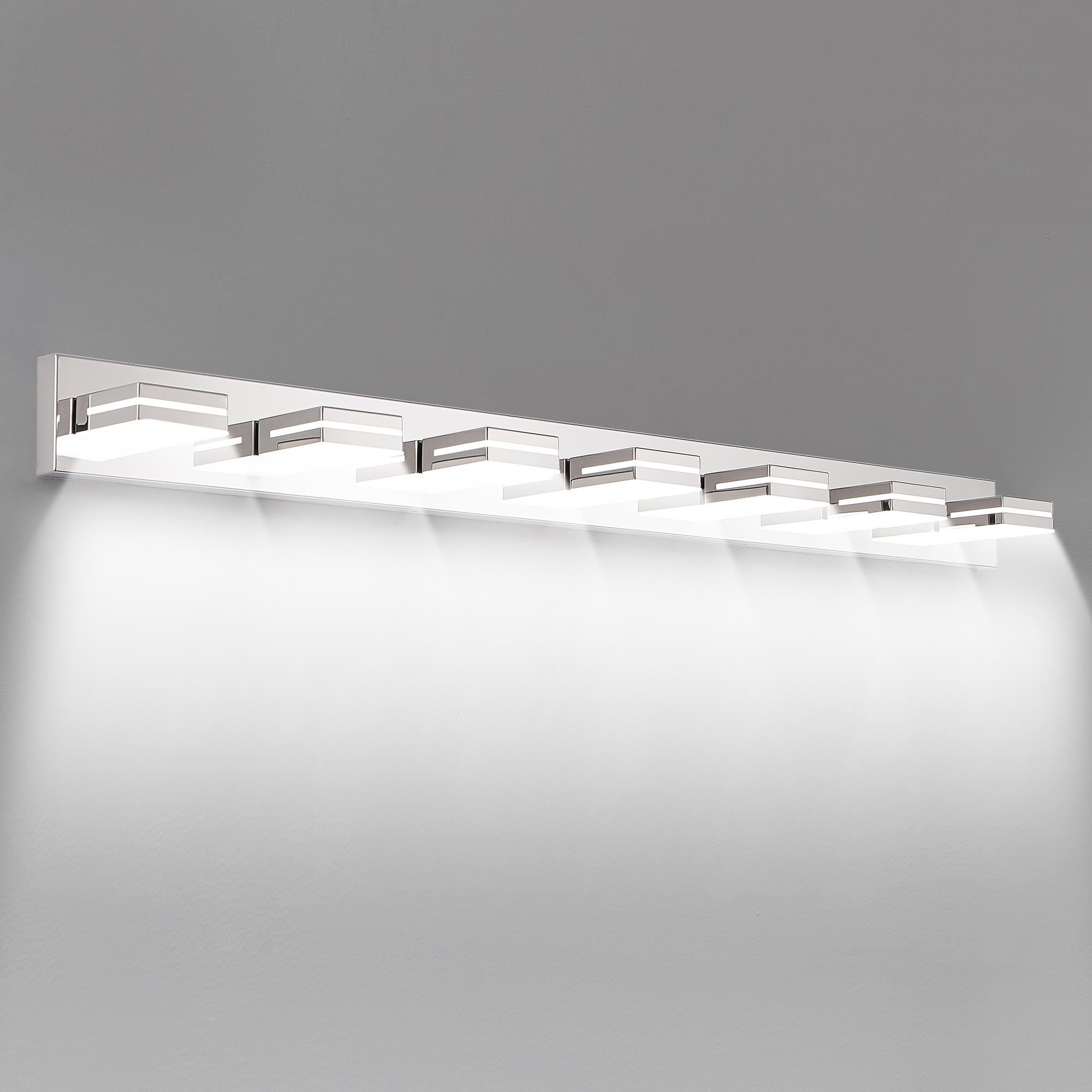 Modern minimalist design:The chrome body paired with geometric lamp heads is stylish and atmospheric, suitable for various modern decoration styles.Efficient LED lighting:Built in high brightness LED light source, providing sufficient and soft lighting, energy-saving and environmentally friendly, with a long service life.Multi head layout, uniform lighting:7 lamp head designs ensure even distribution of light, making it perfect for lighting needs in bathroom mirrors or makeup areas.Durable material:Made of high-quality metal material, rust and corrosion resistant, durable and suitable for use in high humidity environments such as bathrooms or toilets.Easy to install:Equipped with simple installation accessories, it is convenient and fast to complete the installation without complex operations.