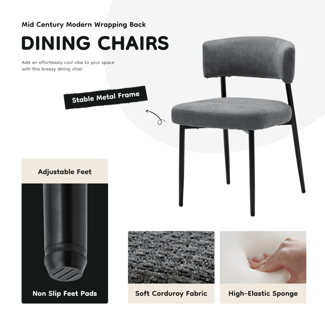 【Ergonomic Curved Backrest Design】The curved backrest on these upholstered dining chairs promotes excellent posture and reduces back strain, making them perfect for extended sitting in dining rooms or home offices.