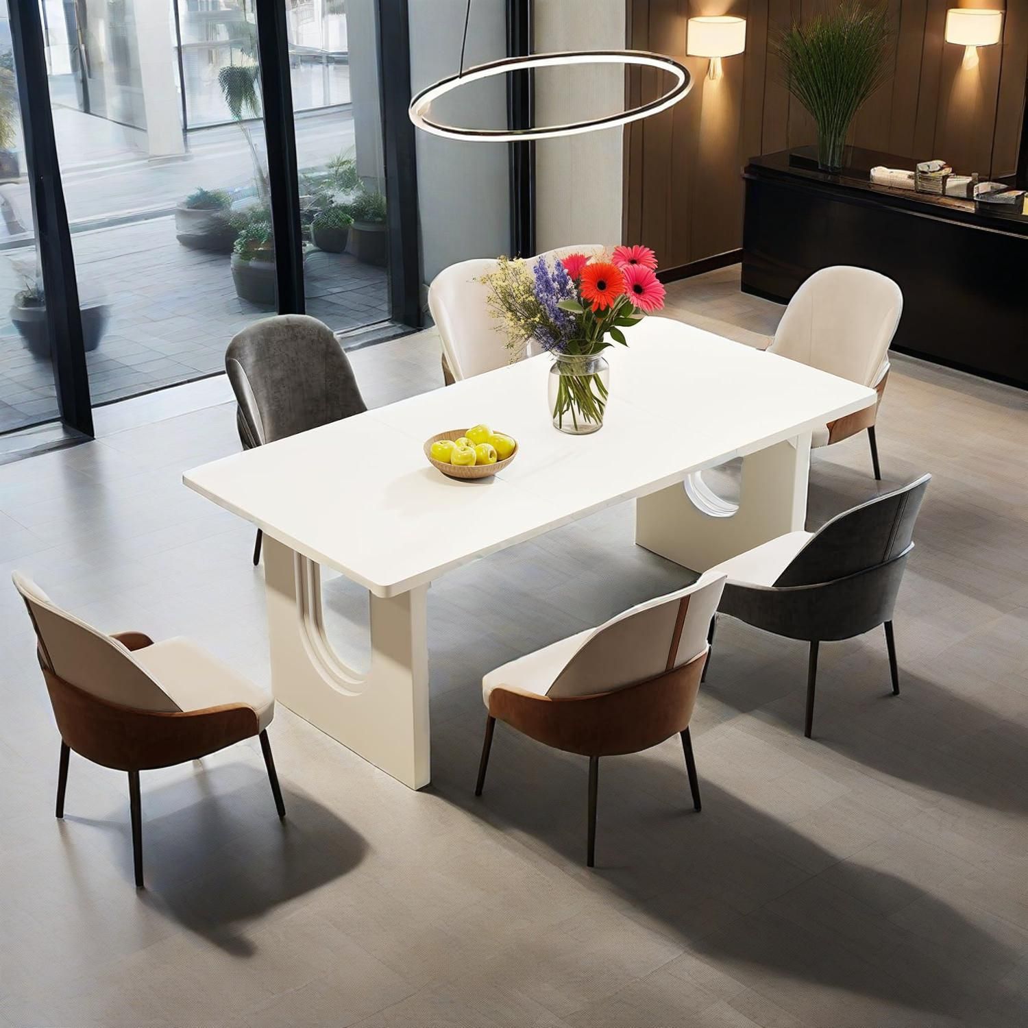 [Timeless & Elegant] With its sleek design and crisp white finish, this large dinner table effortlessly exudes modern sophistication. Upgrade your dining area with our stunning white dining table and create a space that effortlessly combines style, comfort, and functionality. It's the perfect centerpiece for any dining room, providing a place where friends and family can gather and talk or share a good meal.
