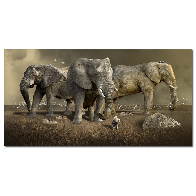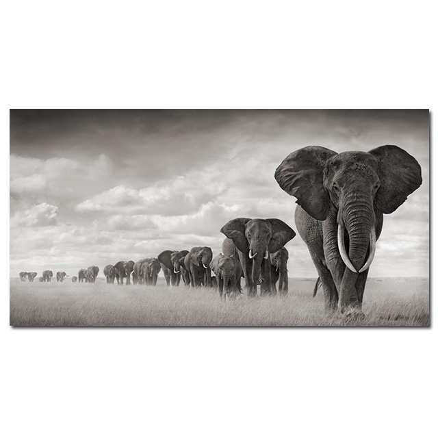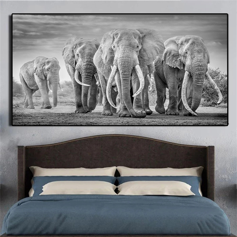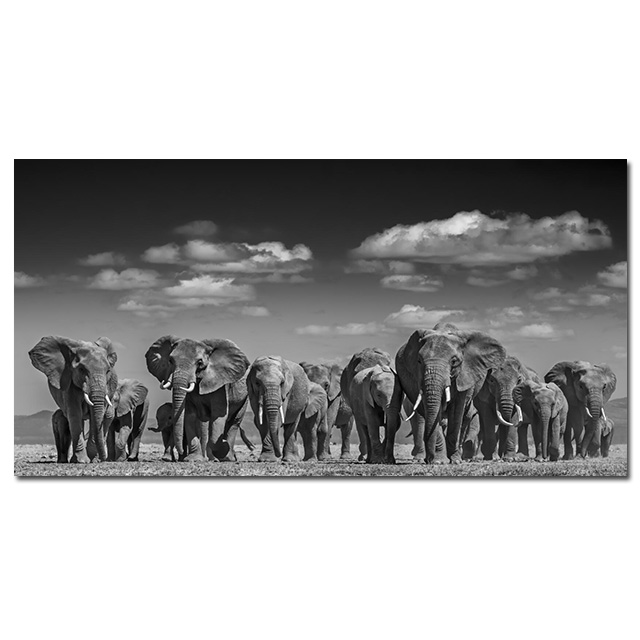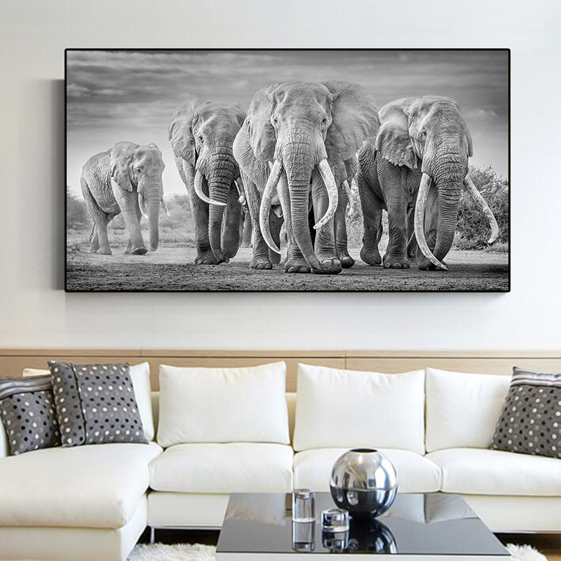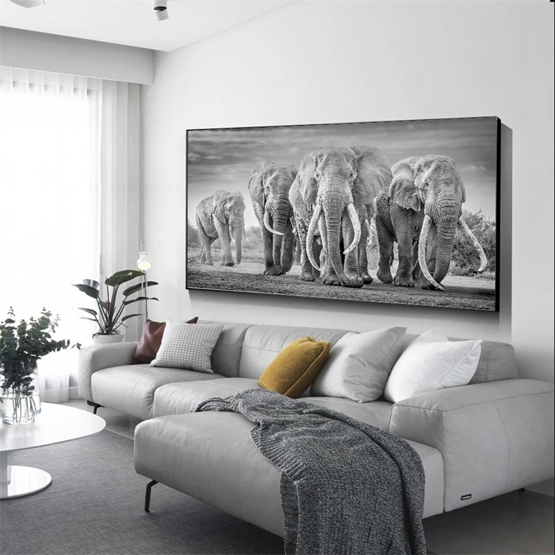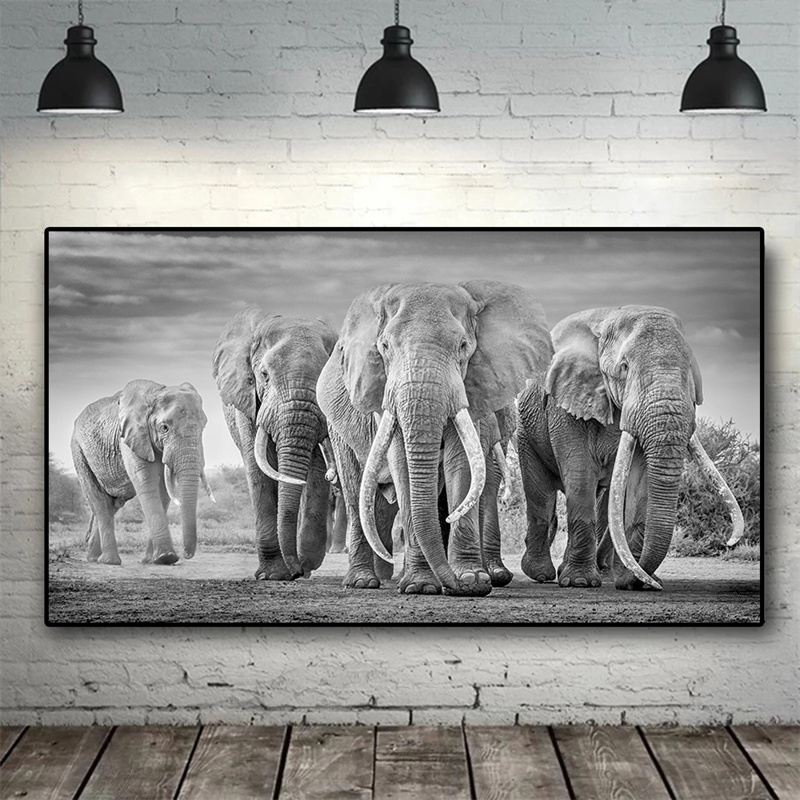 Modern Elephant Canvas Animal Poster And Print Black And White Wall Picture