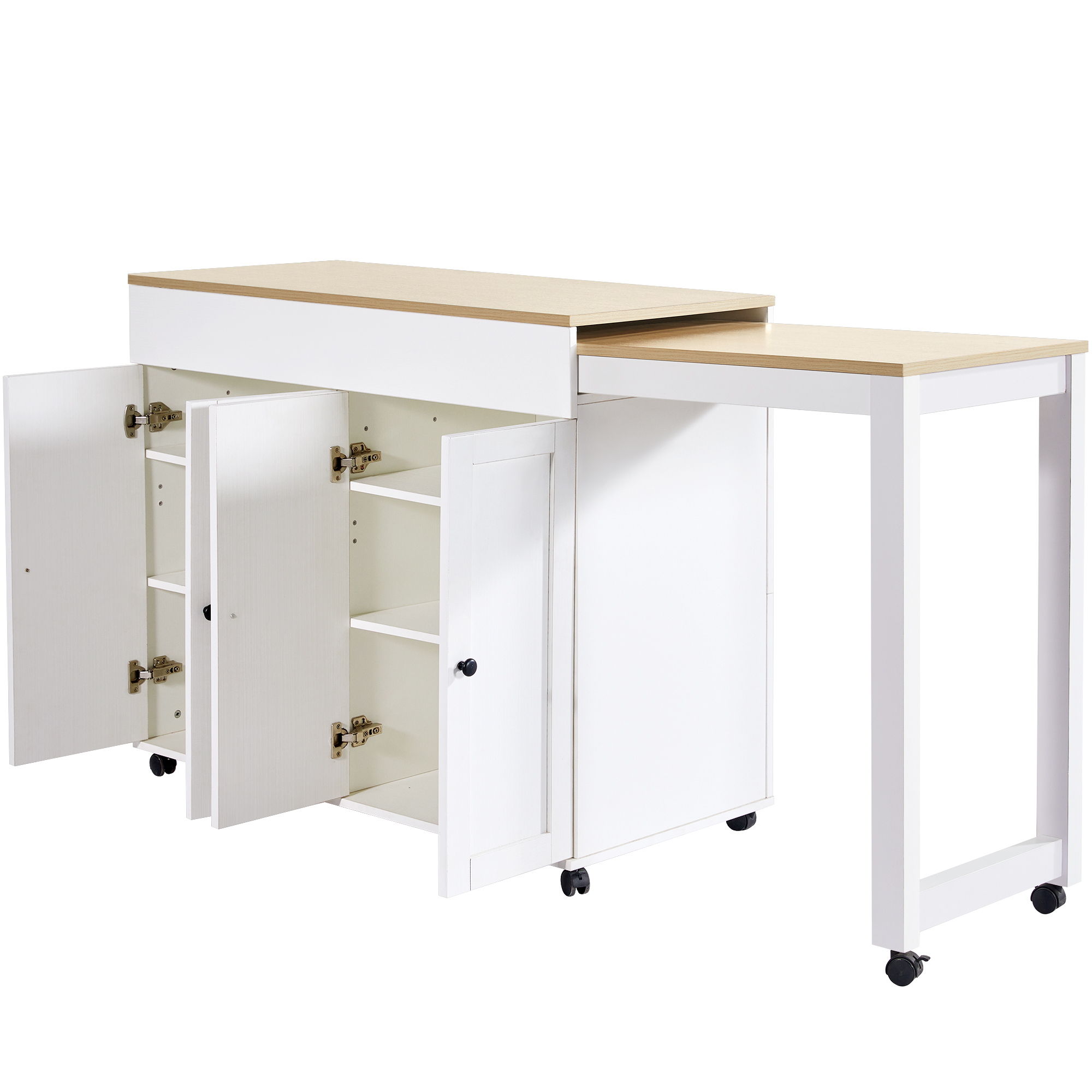 Product Name:Modern Extendable Bar Table (118-180×50×94cm), Extendable Dining Table with Storage, with Six Shelves, Standing Table Bistro Table, for Dining Room, Use as Living Room Room Divider, White/Gray