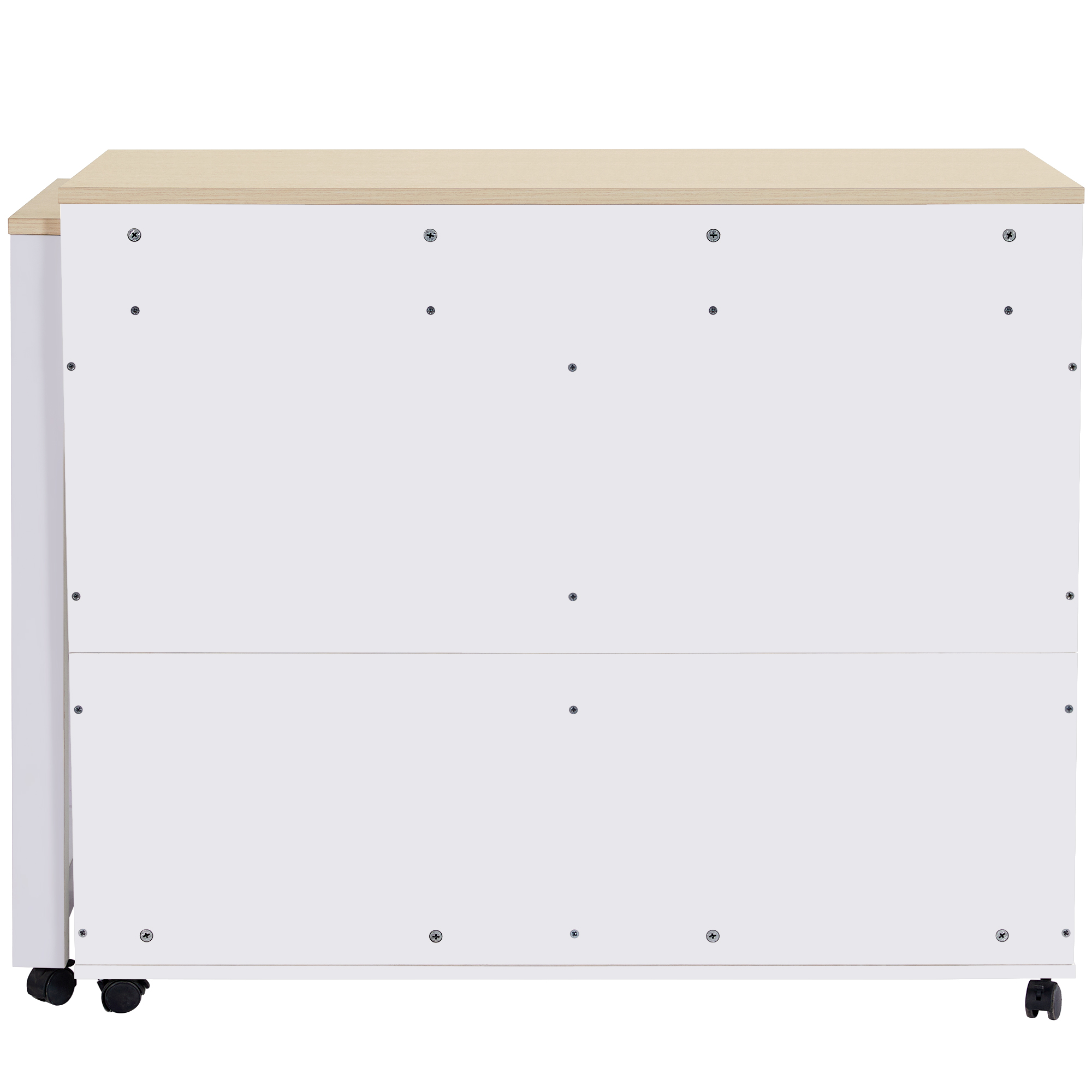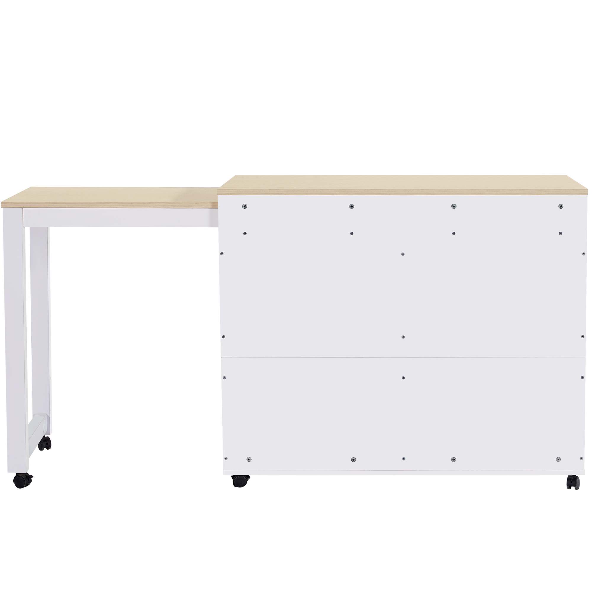 This multifunctional standing table combines high-quality materials with a practical design, making it ideal for home and office use. Made with premium materials and featuring a unique cabinet door design along with high-quality hinges and zinc alloy door handles, the table guarantees durability and aesthetics. It includes six shelving compartments with adjustable partitions, offering flexible storage solutions for easy organization and storage. The spacious tabletop is suitable for a wide range of applications, whether for work, study, or entertainment. Furthermore, the length of the table can be flexibly adjusted between 118 cm and 180 cm to accommodate different space and usage needs, allowing it to be easily extended or reduced.