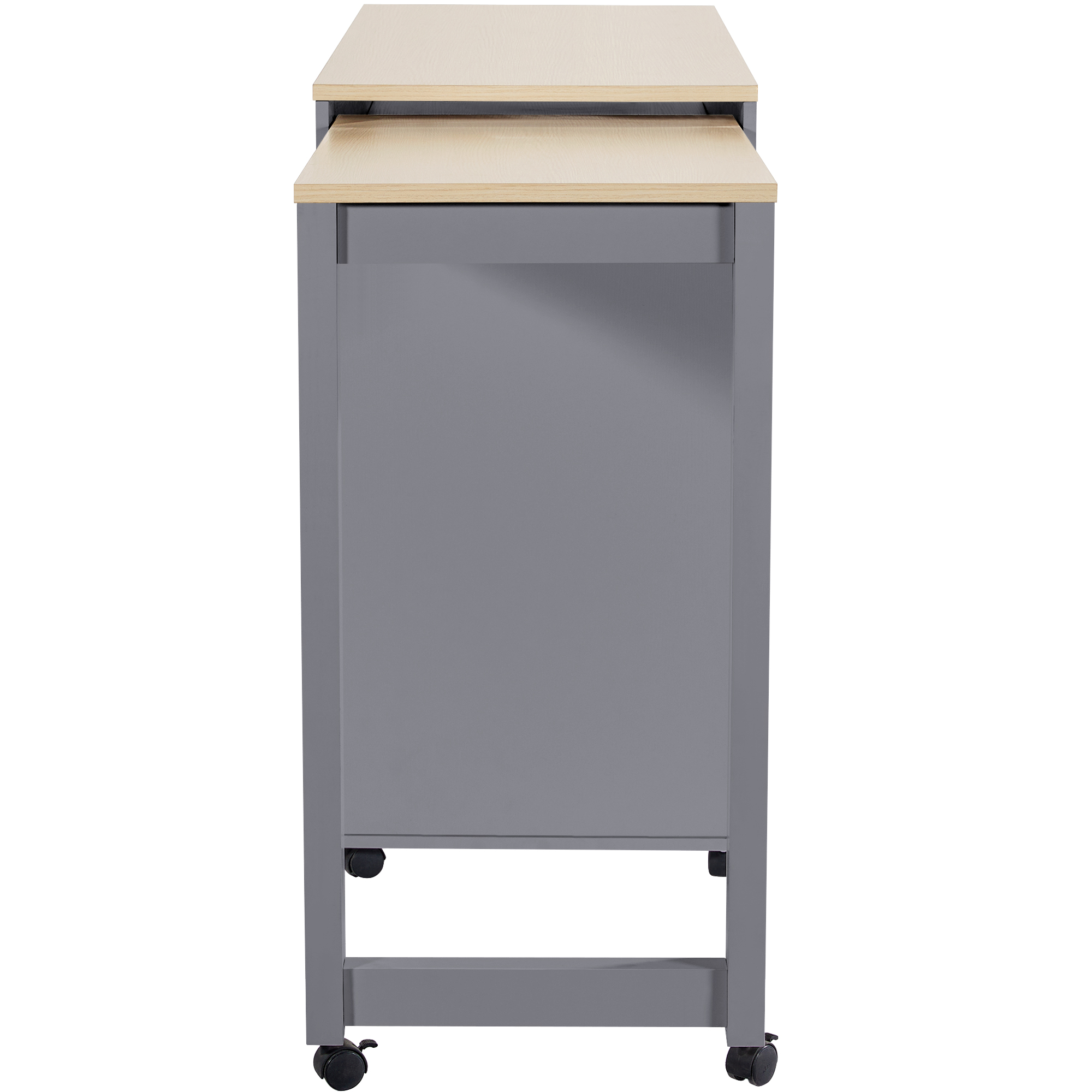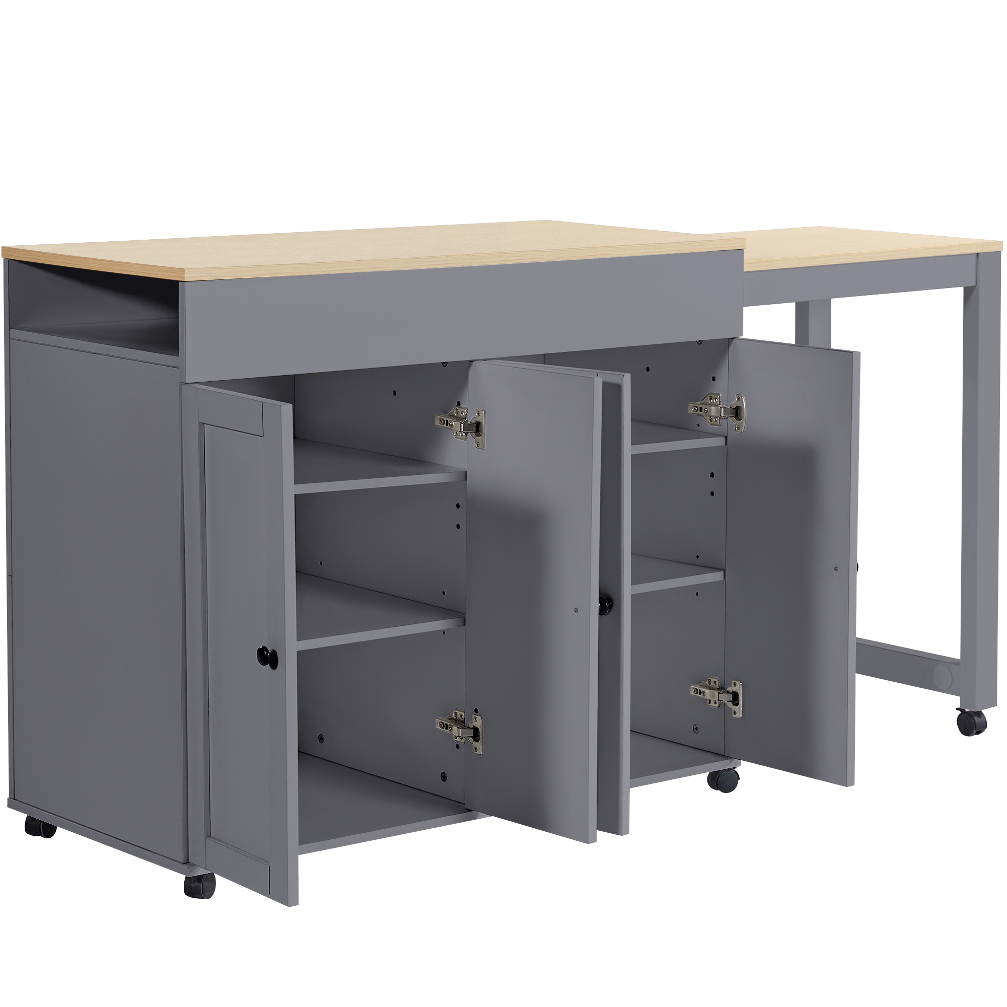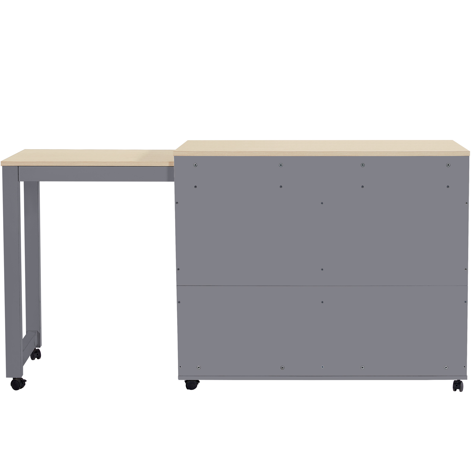 This multifunctional standing table combines high-quality materials with a practical design, making it ideal for home and office use. Made with premium materials and featuring a unique cabinet door design along with high-quality hinges and zinc alloy door handles, the table guarantees durability and aesthetics. It includes six shelving compartments with adjustable partitions, offering flexible storage solutions for easy organization and storage. The spacious tabletop is suitable for a wide range of applications, whether for work, study, or entertainment. Furthermore, the length of the table can be flexibly adjusted between 118 cm and 180 cm to accommodate different space and usage needs, allowing it to be easily extended or reduced.