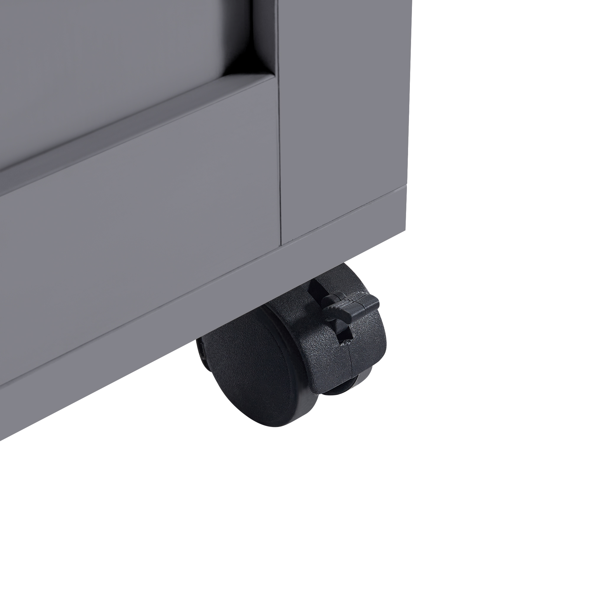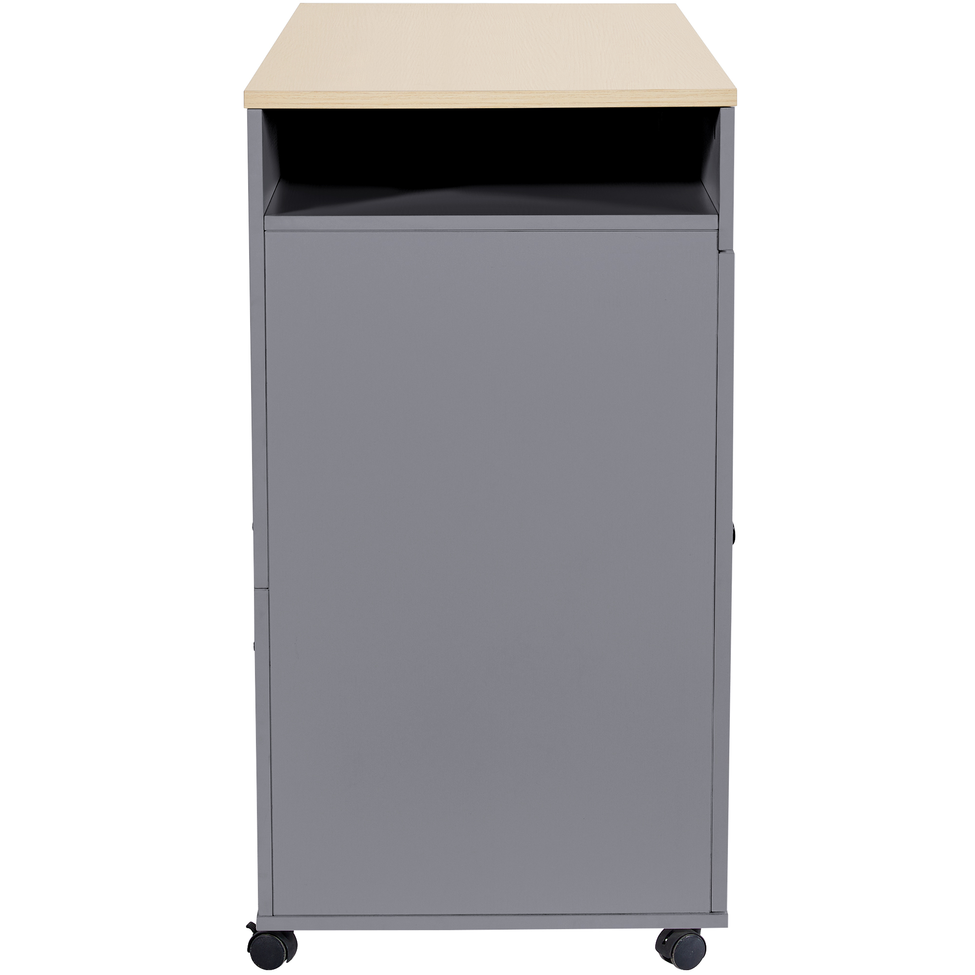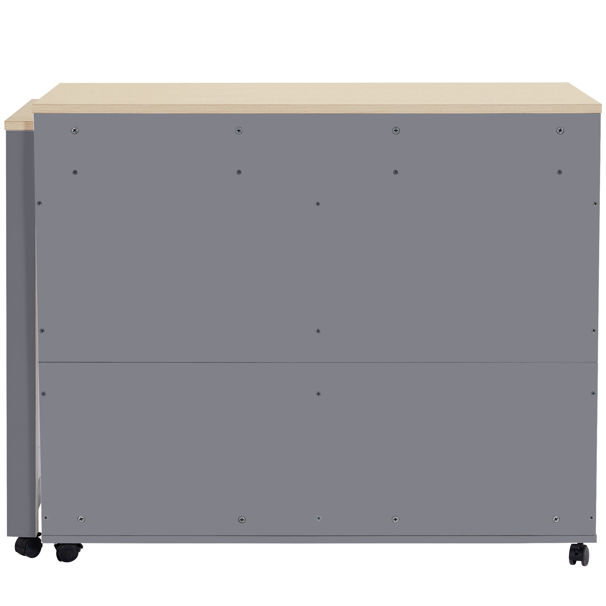 This multifunctional standing table combines high-quality materials with a practical design, making it ideal for home and office use. Made with premium materials and featuring a unique cabinet door design along with high-quality hinges and zinc alloy door handles, the table guarantees durability and aesthetics. It includes six shelving compartments with adjustable partitions, offering flexible storage solutions for easy organization and storage. The spacious tabletop is suitable for a wide range of applications, whether for work, study, or entertainment. Furthermore, the length of the table can be flexibly adjusted between 118 cm and 180 cm to accommodate different space and usage needs, allowing it to be easily extended or reduced.