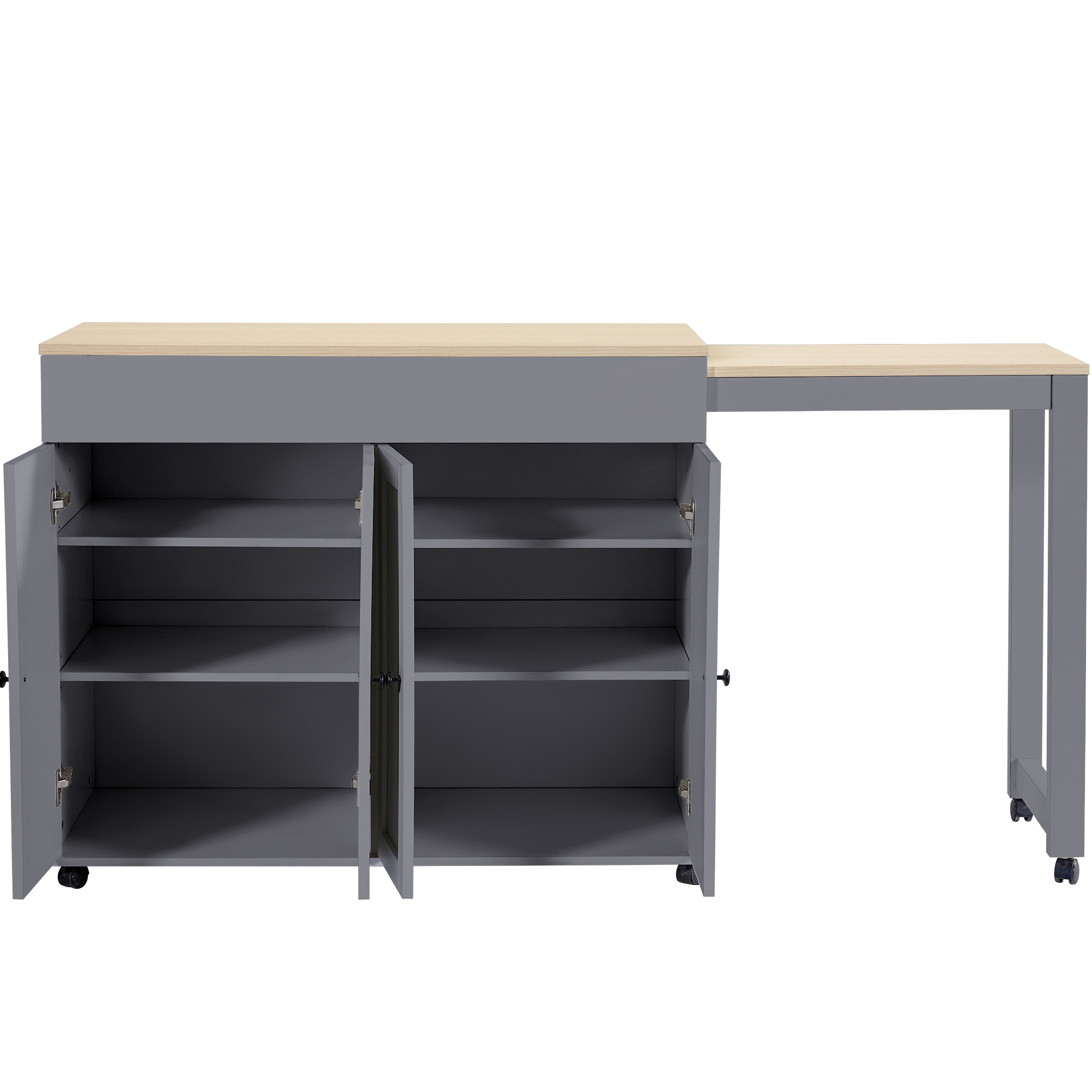 Product Name:Modern Extendable Bar Table (118-180×50×94cm), Extendable Dining Table with Storage, with Six Shelves, Standing Table Bistro Table, for Dining Room, Use as Living Room Room Divider, White/Gray