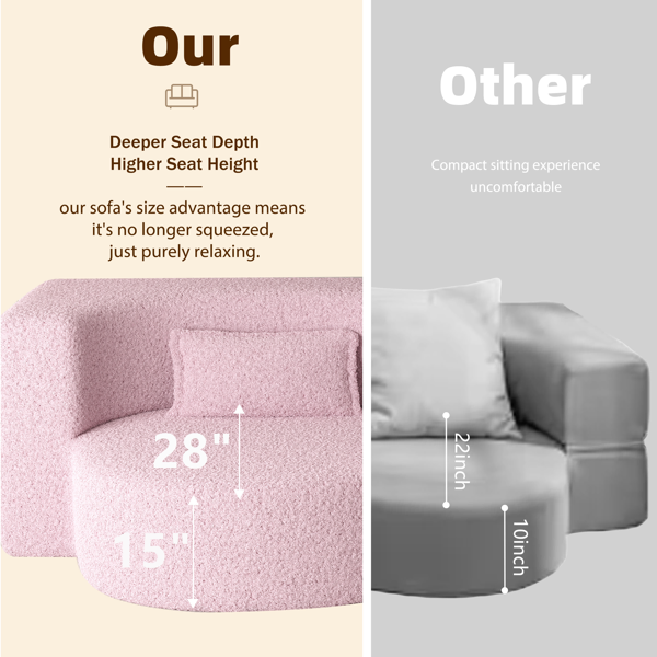 Modern Floor Sofa With 2 Pillows,Convertible Teddy Fabric Foam-Filled Sleeper Sofa Bed,15' Twin Size Folding Mattress For Living Room,Guest Bed,Playroom,no Assembly Required,Pink