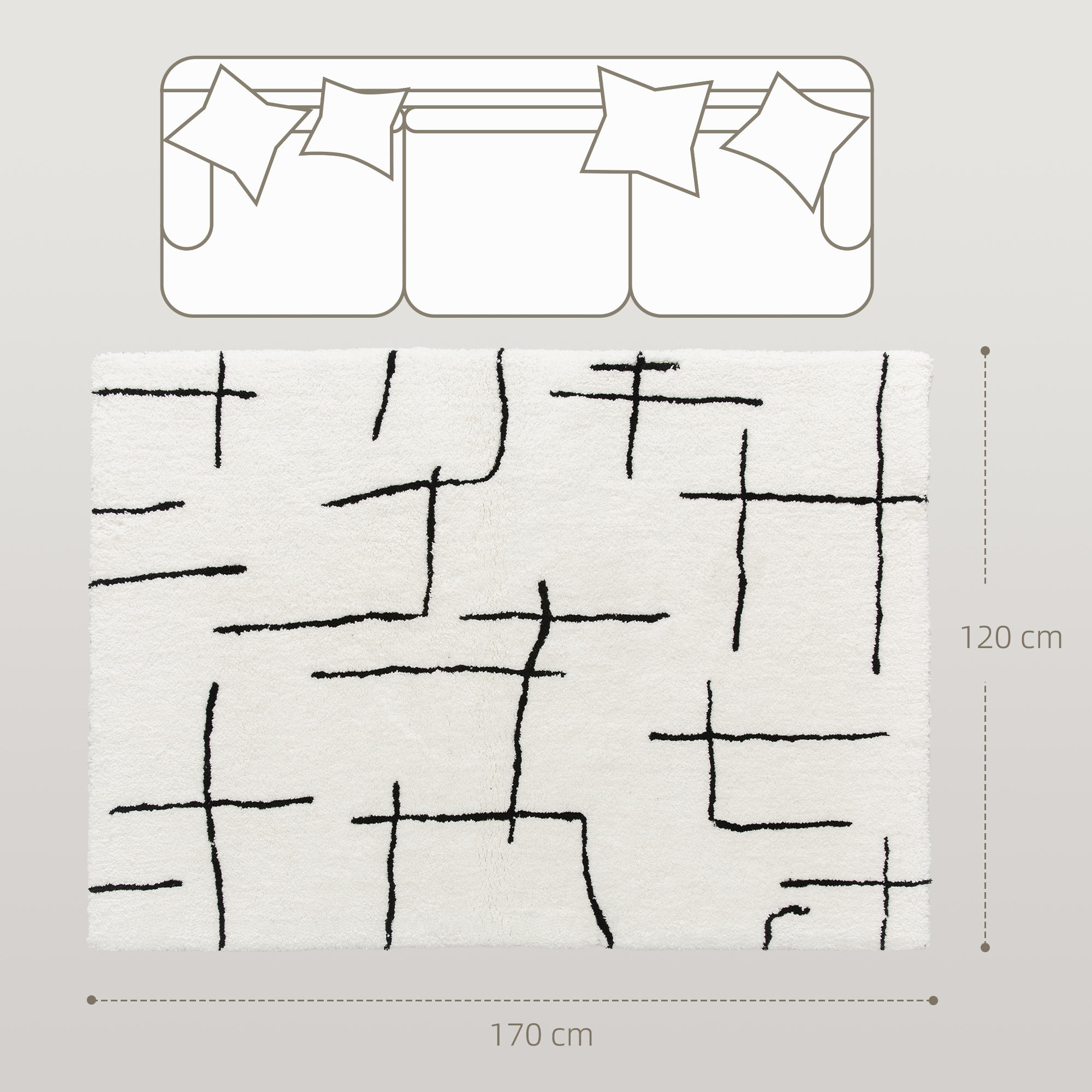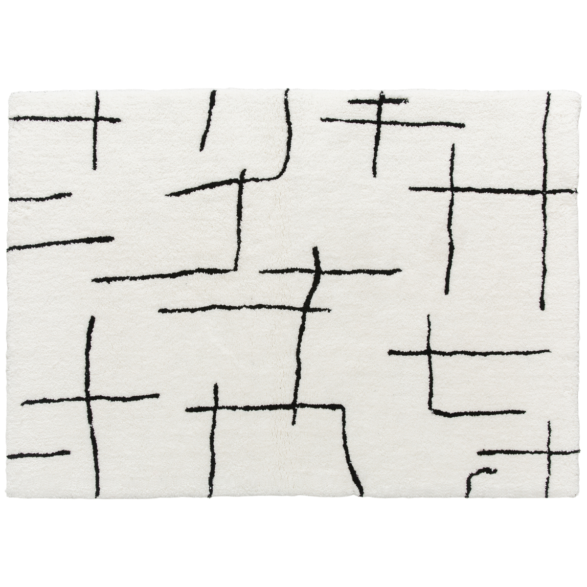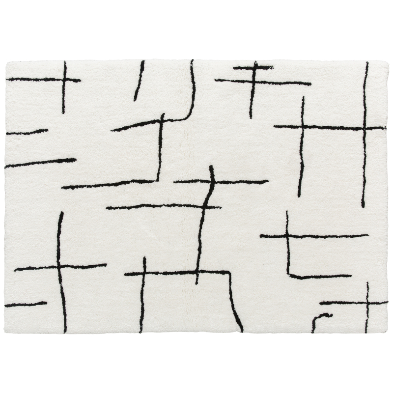 Transform your home into a haven of comfort and style with the area rug. Crafted from 100% polyester, its plush texture invites relaxation, making it great for any space. The cream base with abstract black lines adds a modern touch, effortlessly enhancing living rooms or social areas. This versatile large rug fits seamlessly into bedrooms, hallways, or cosy corners.