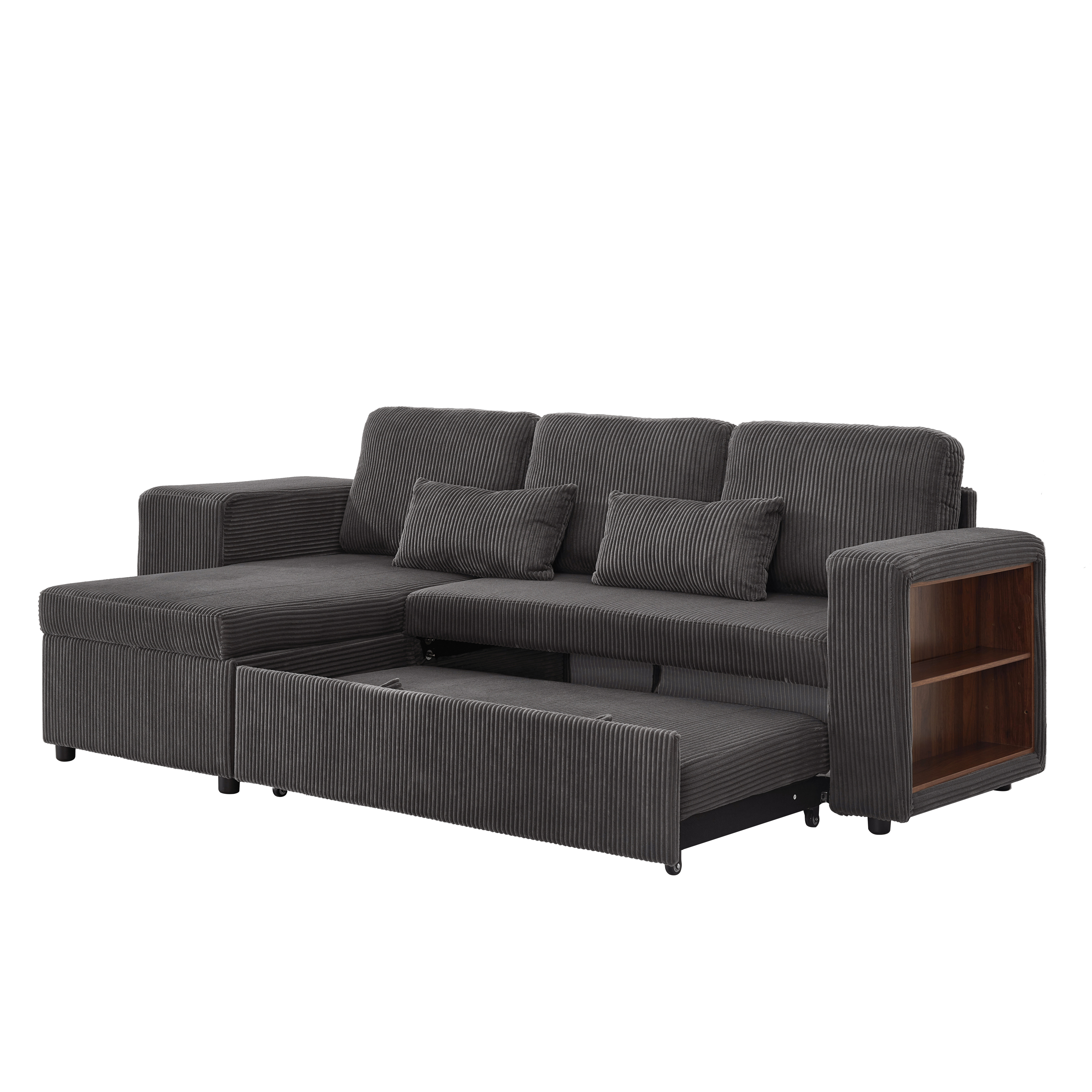 Product Name:Modern L-Shaped Convertible Sofa Bed, 3-in-1 Convertible Sofa Bed with Internal Storage Chaise, Nesting Footstools, Integrated Charging Station & Adjustable Armrest Side Storage, Corduroy Fabric, Grey