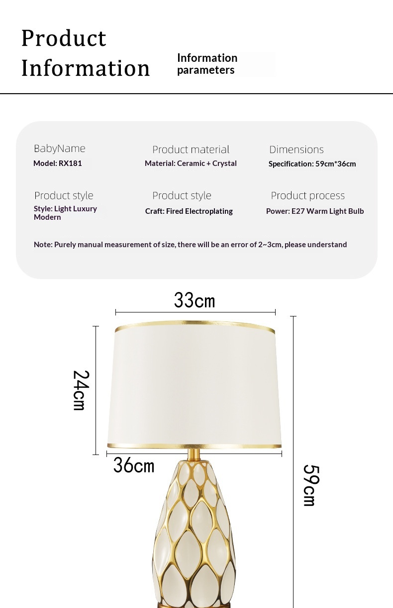 Modern Light-Luxury Creative Honeycomb Ceramic Table Lamp
