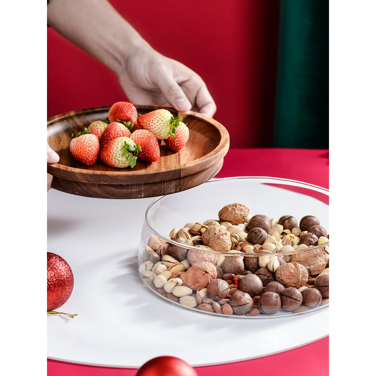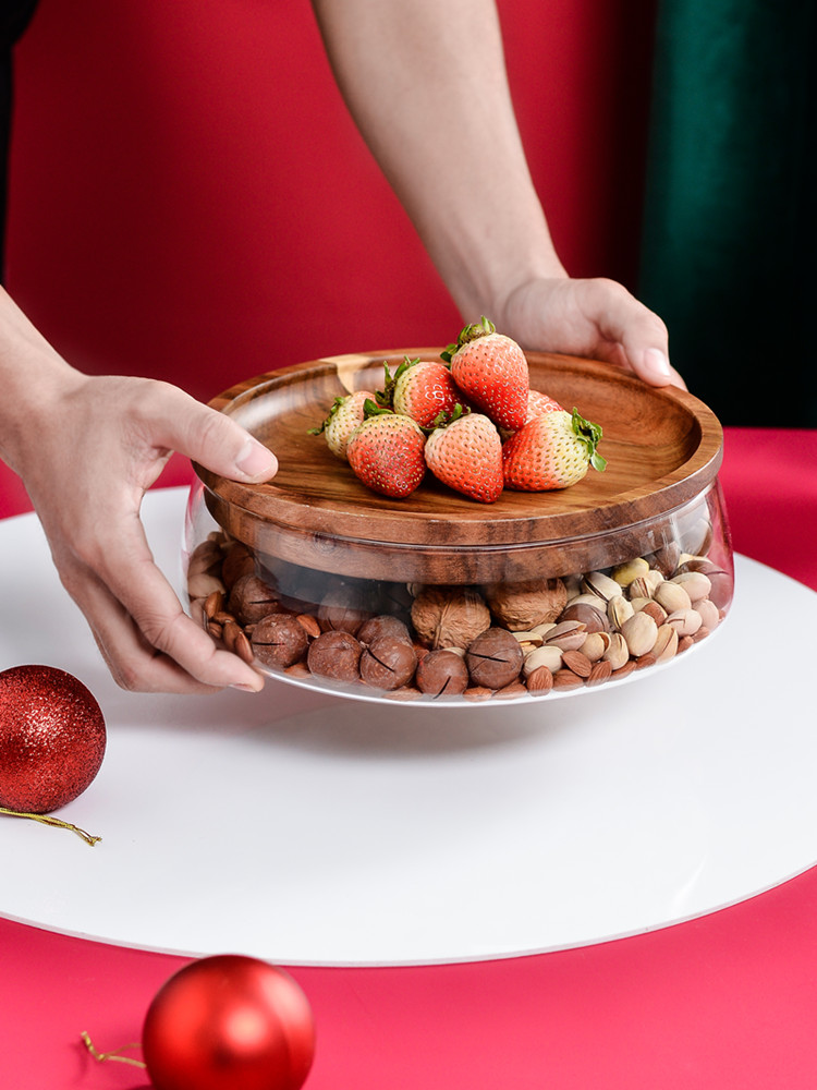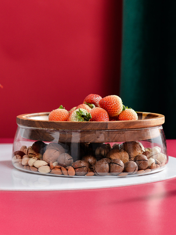 1. Premium Material: The box is made of high-quality lead-free glass and imported acacia wood, it can be used as a fruit plate. It is safe, environmentally friendly, and it is resistant to coldness and heat. It continues the atmosphere of wood and the smooth and polished surface.
