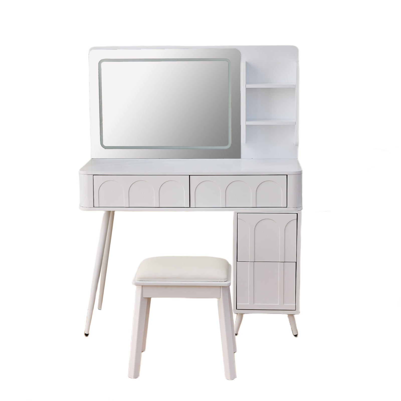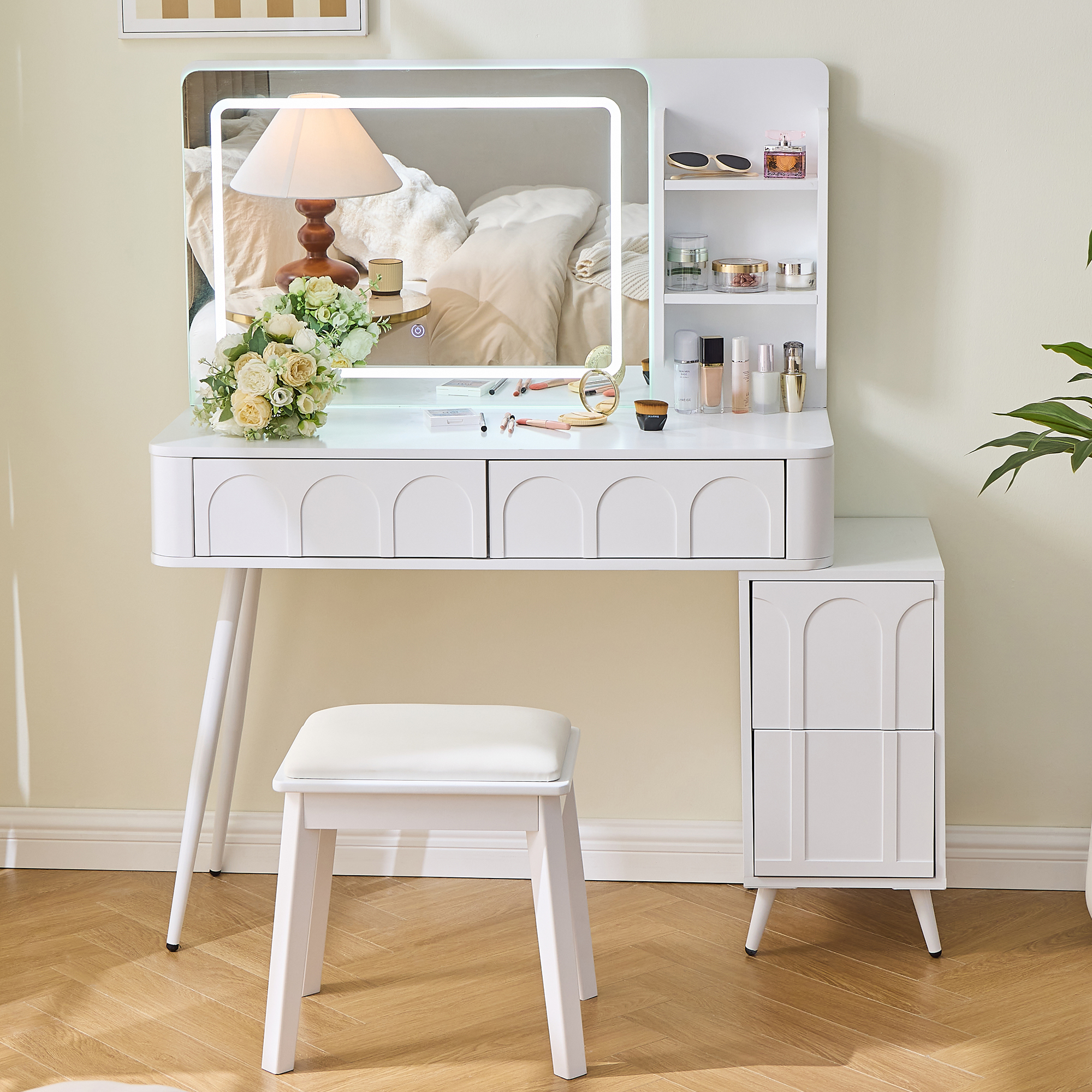 Product Name:Modern Makeup Vanity Desk with LED Lights & Mirror, 4 Drawer Dressing Table Set with Stool, 3 Colors Dimmable Brightness, Space-Saving for Bedroom, White