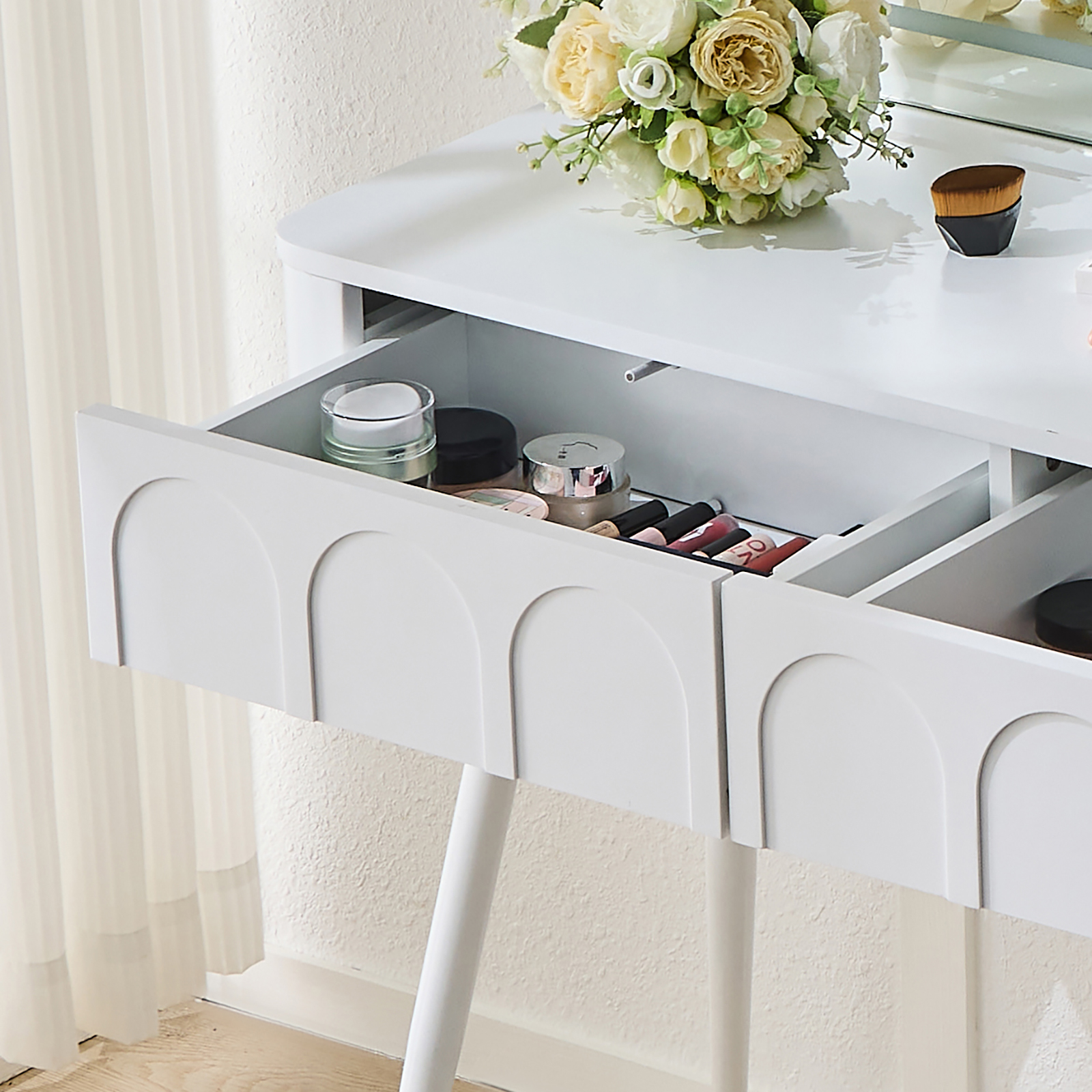 The vanity's drawer panel is designed with arched groove. The chic desk is fit for any roon decor.