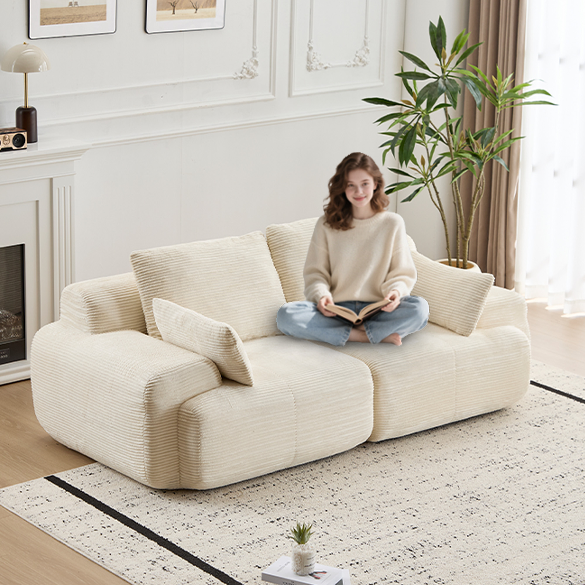 Product Name:Modern Memory Foam Compressed Sofa,2 Seater Large Sectional Couches for Living Room,Pet-Friendly Cloud Modular Sectional Sofa,Corduroy Fabric,Extra Deep Loveseat,No Assembly required, Beige