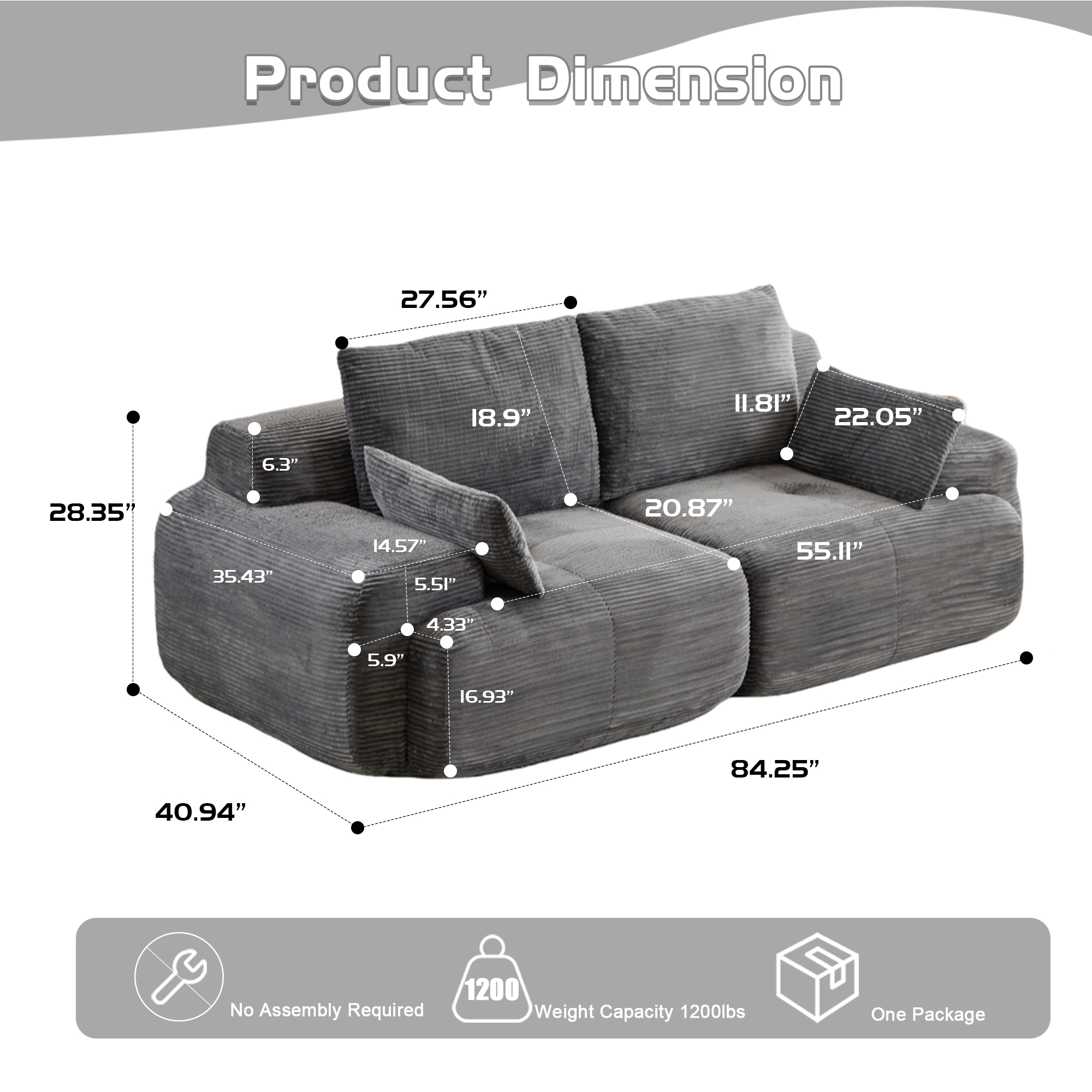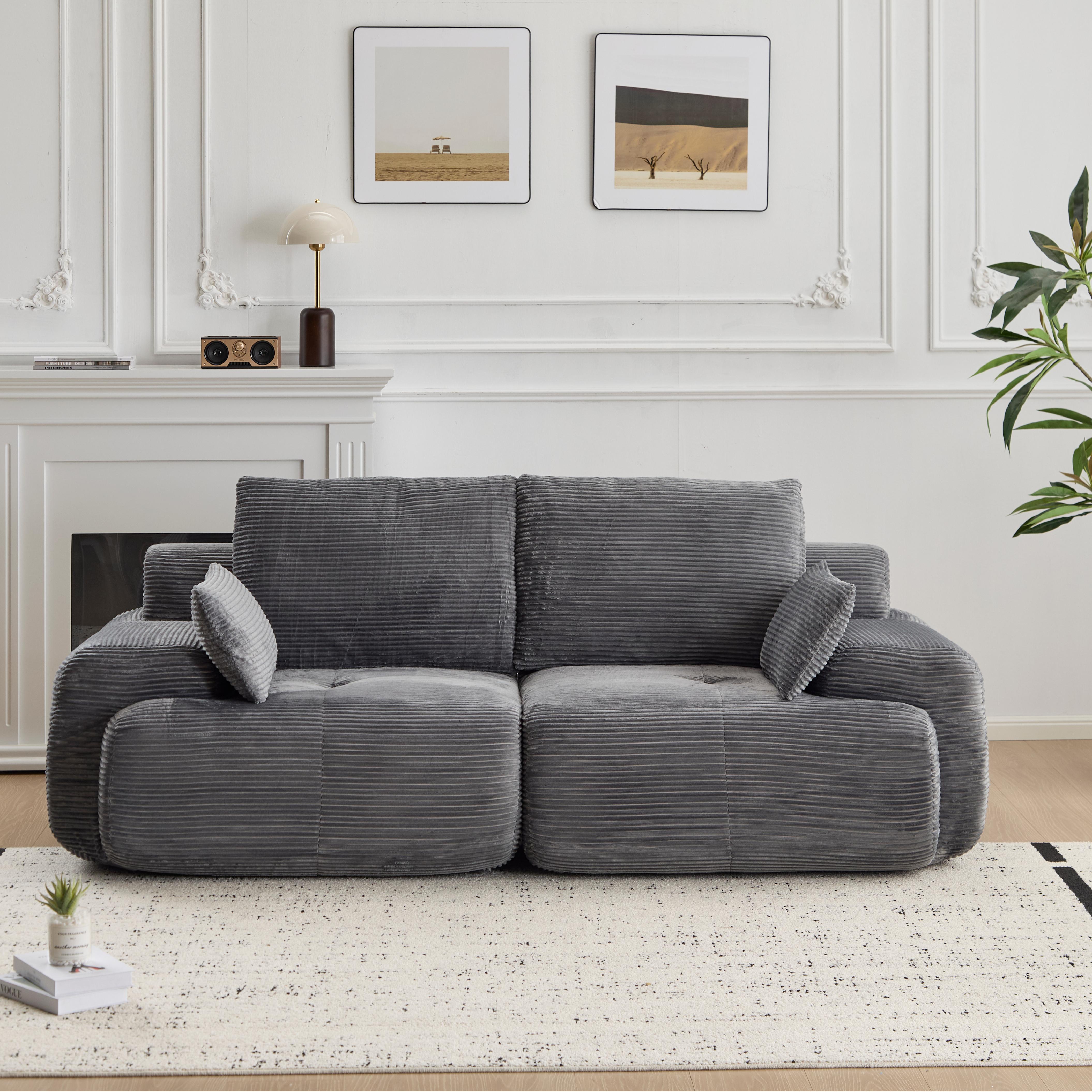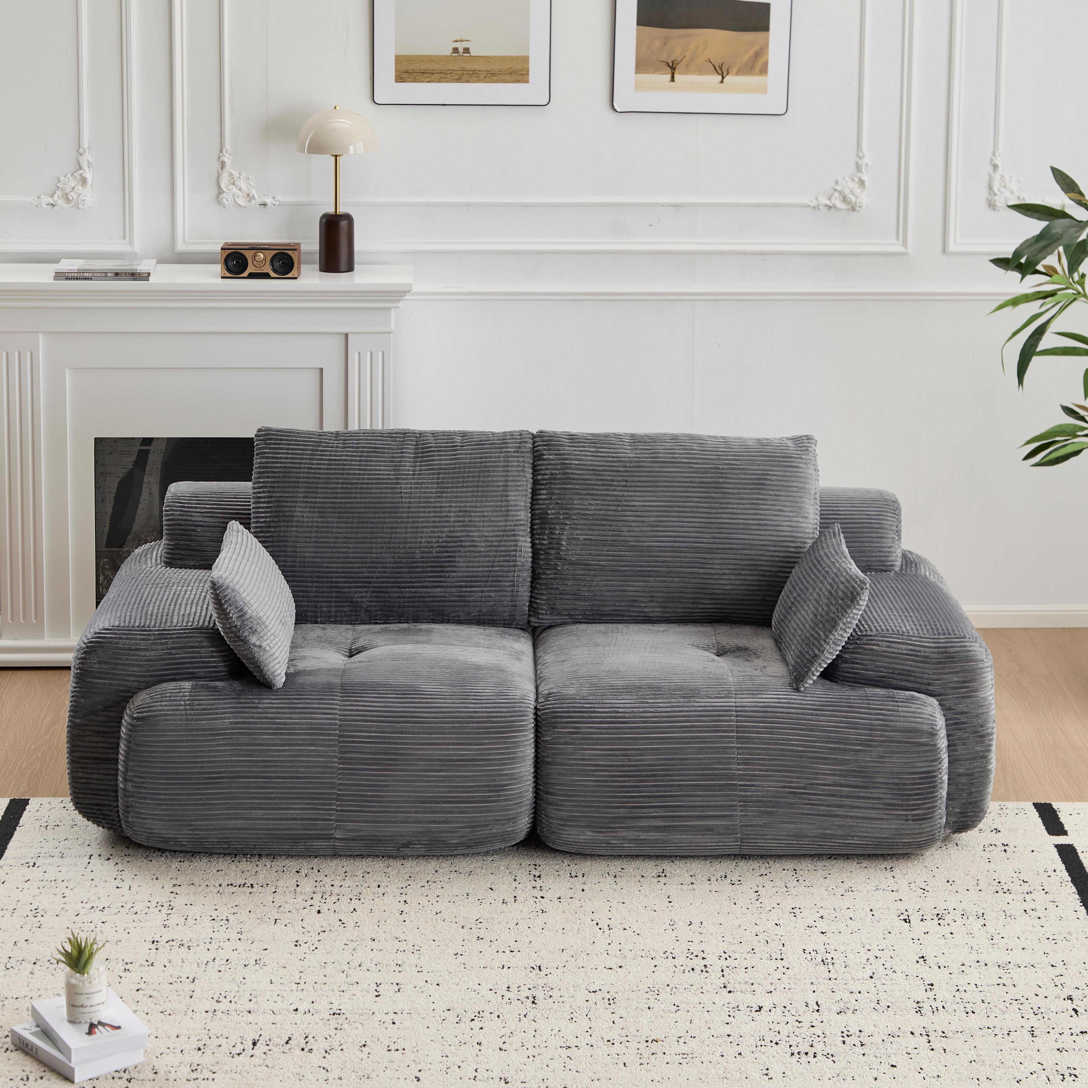 Product Name:Modern Memory Foam Compressed Sofa,2 Seater Large Sectional Couches for Living Room,Pet-Friendly Cloud Modular Sectional Sofa,Corduroy Fabric,Extra Deep Loveseat,No Assembly required, Grey