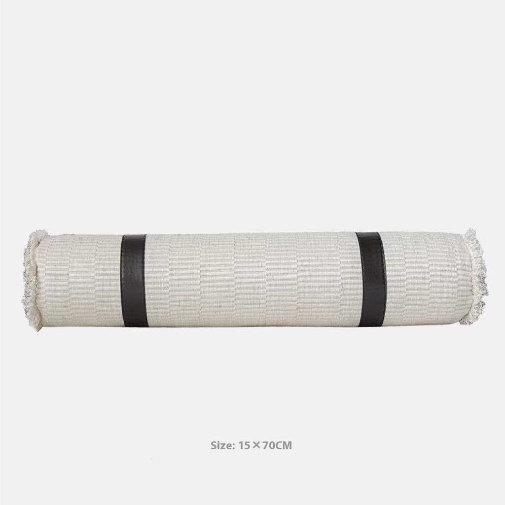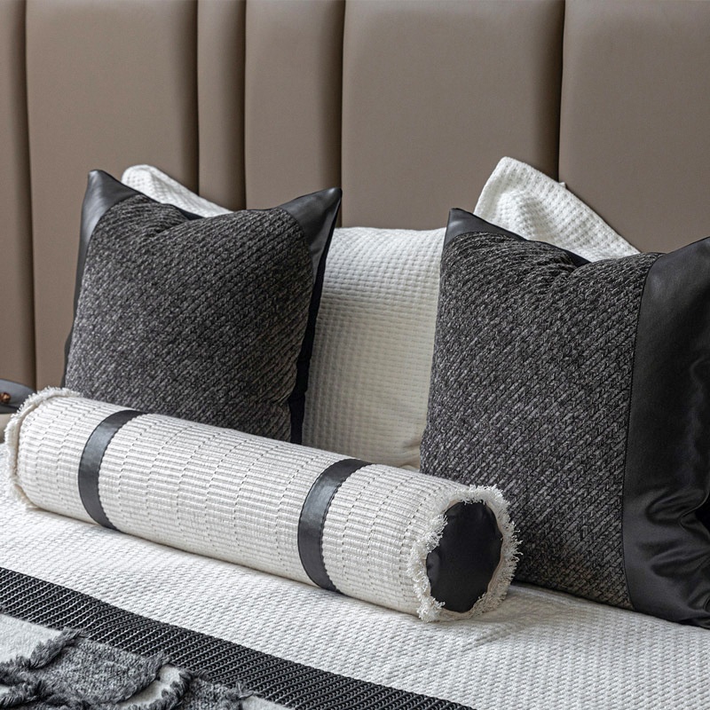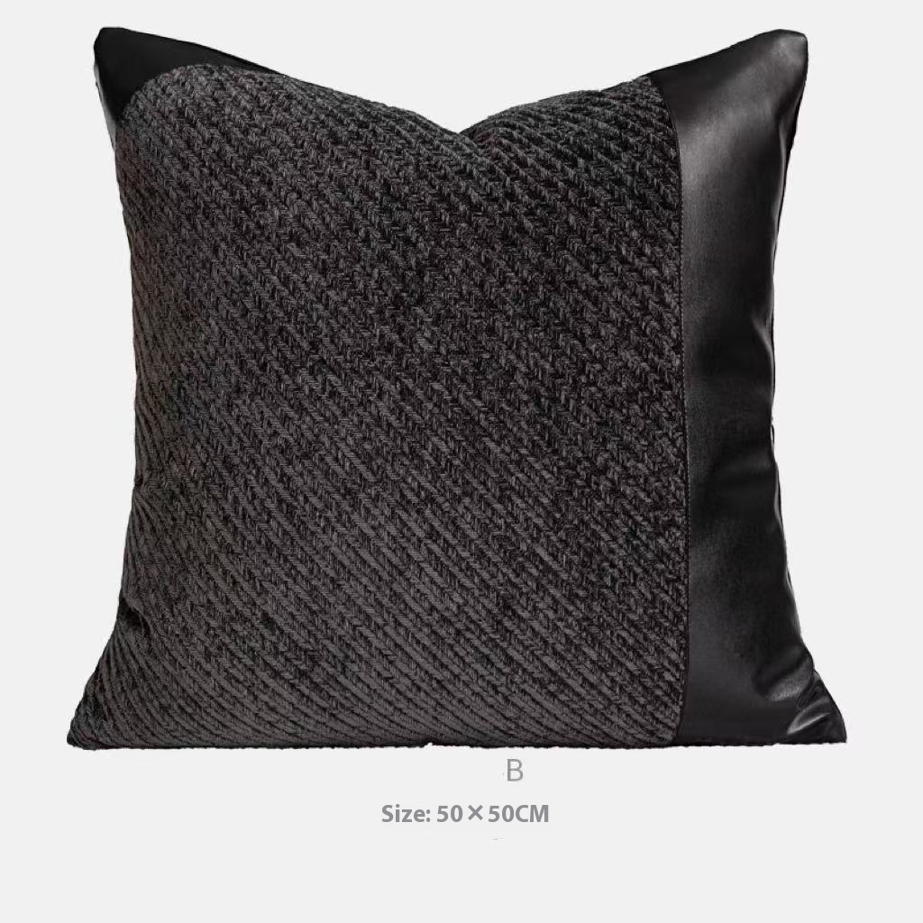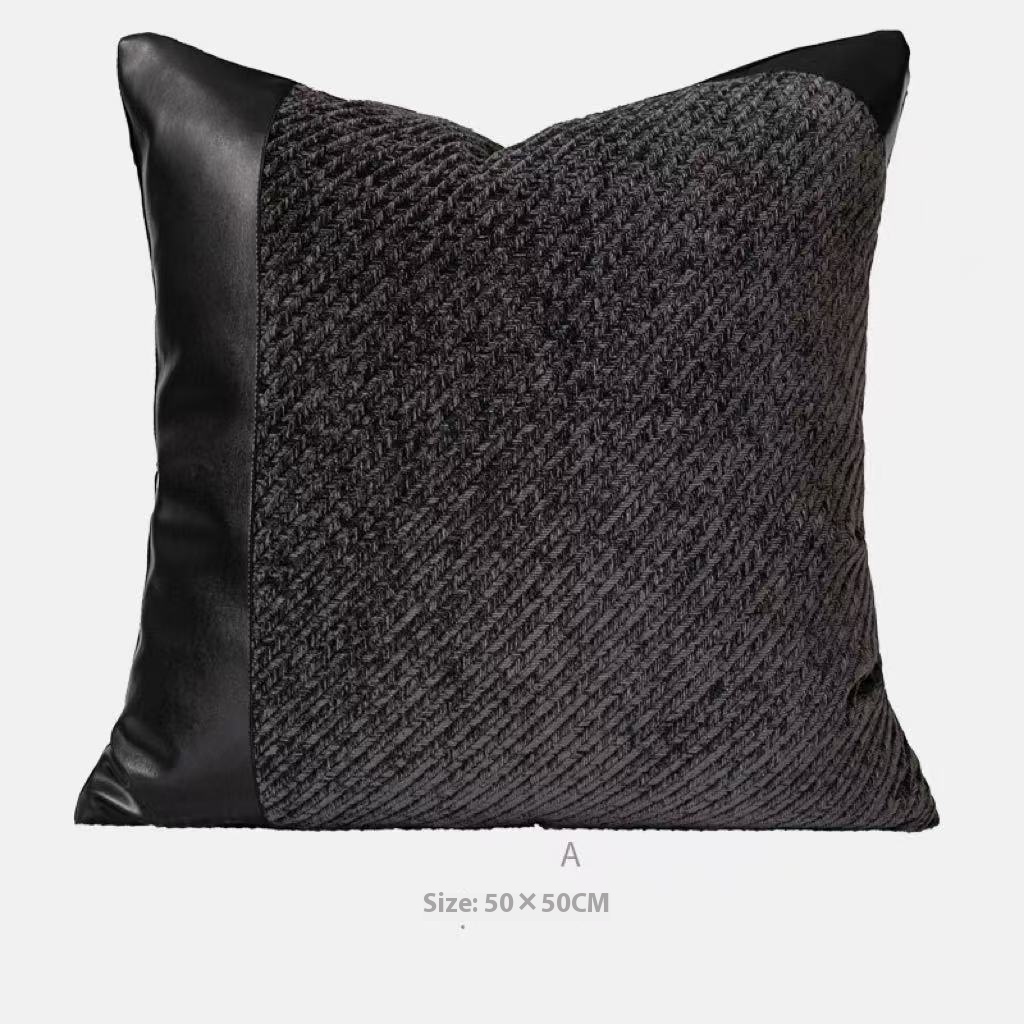 Color: gray and white plaid, black woven, dark gray a pillowcase, dark gray B pillowcase, leather round pillow