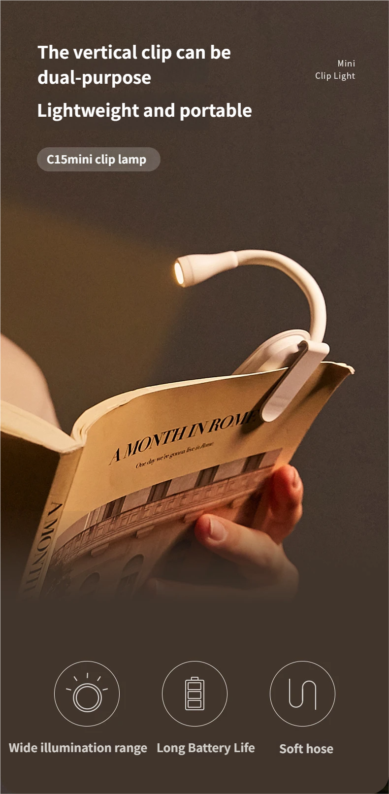 This modern minimalist clip-on table lamp comes in classic white and black, designed with multi-functional lighting effects for diverse scenarios. Equipped with 3W three-color light, 400mAh built-in rechargeable battery and button switch, it serves as a study light, night light, atmosphere light and even a delicate ornament, meeting daily lighting and decorative needs. With durable PVC lampshade and 20000h long service life, it’s compact, lightweight and easy to clip on desks, beds and shelves for home, office and dorm use.