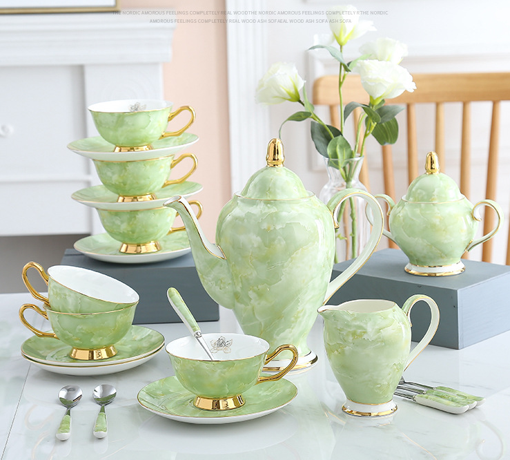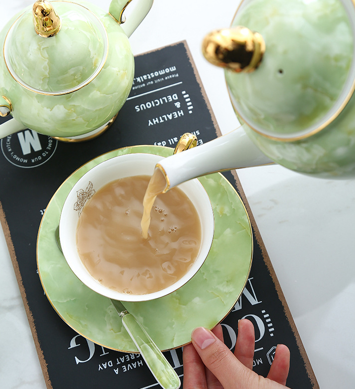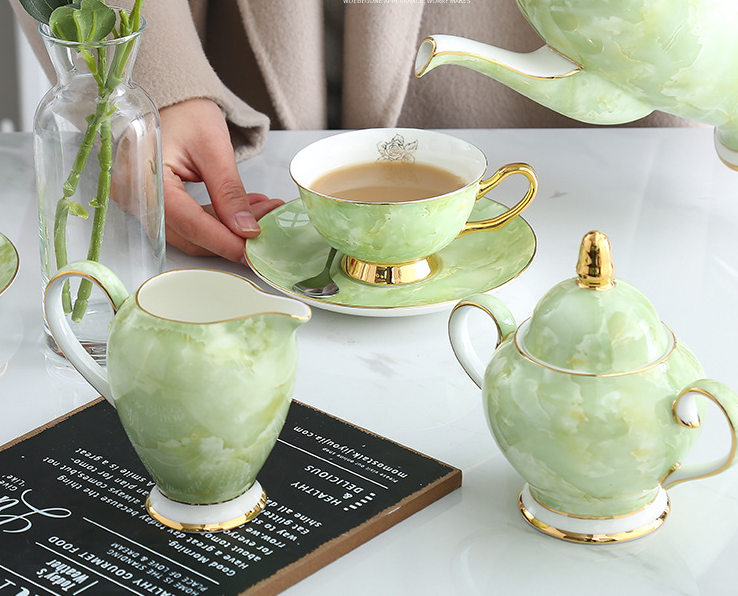 Modern Minimalist Coffee Set With Bone China Tracing Gold