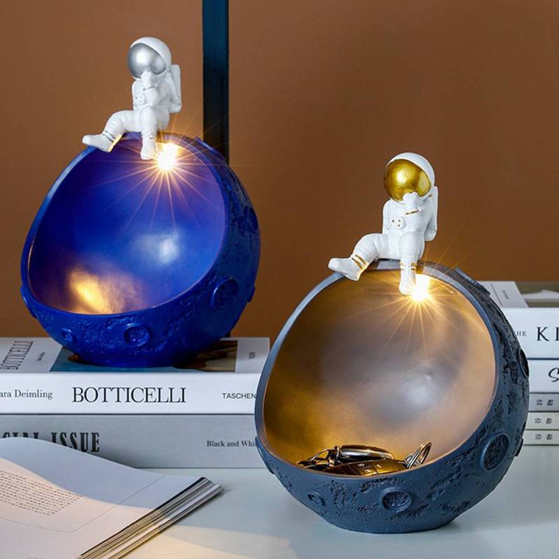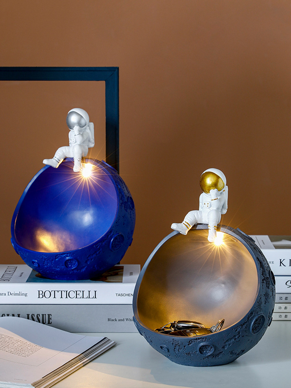 Color: red gold astronaut sitting on the planet, blue silver astronaut sitting on the planet, gray gold astronaut sitting on the planet, starry sky, light gray, gold