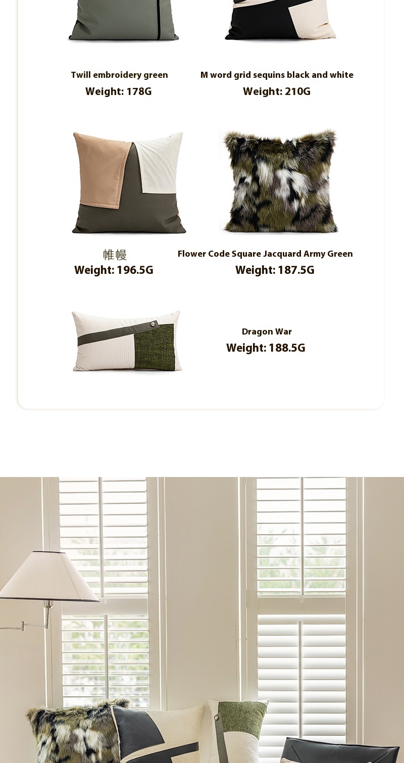 Color: Curtain, oblique embroidered green, beige sequins black and white, floral jacquard army green, dragon battle