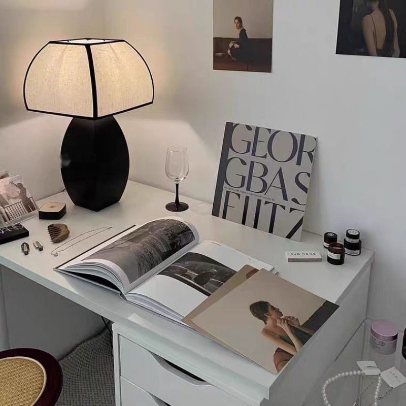 Material: base wrought iron, fabric shade