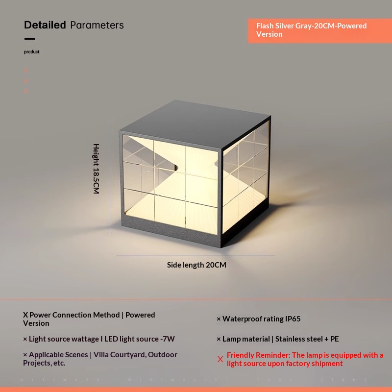 - Stainless Steel Flash Silver Gray, Plug-in Version 20 x 17.5 cm, Warm Light