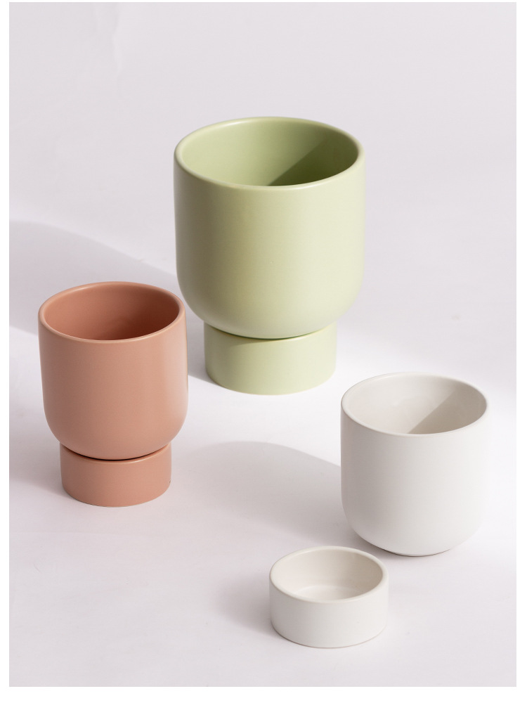 Modern Morandi Style Ceramic Green Tabletop Flowerpot