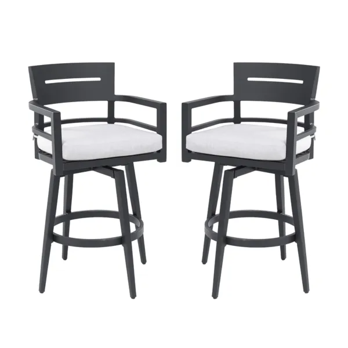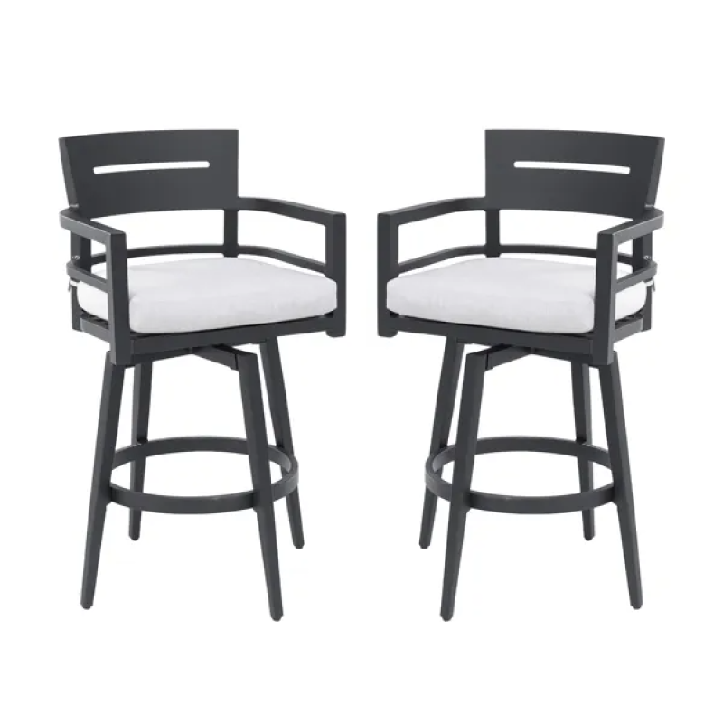 Modern Outdoor 2-Piece Swivel Bar Chairs - Aluminum Frame With Ember Black, 360 Swivel, Ergonomic Backrest Armrests, Tapered Legs, Sunbrella Cushion, Weather-Resistant Durable Patio Bar Stool
