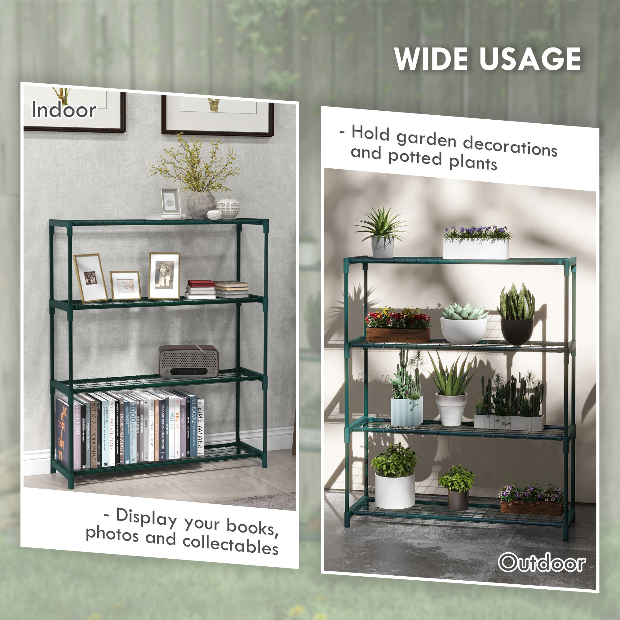 An excellent place to hold and show off all your plants- this tiered plant stand. The four-tier design means it's got plenty of room to display plants, flowers - even ornaments and books if you wish. Made from steel, the structure of this plant shelf is tough and will support everything in place. Use it all over the home, from the porch through to the conservatory.