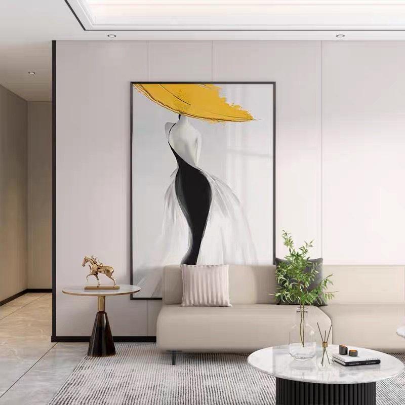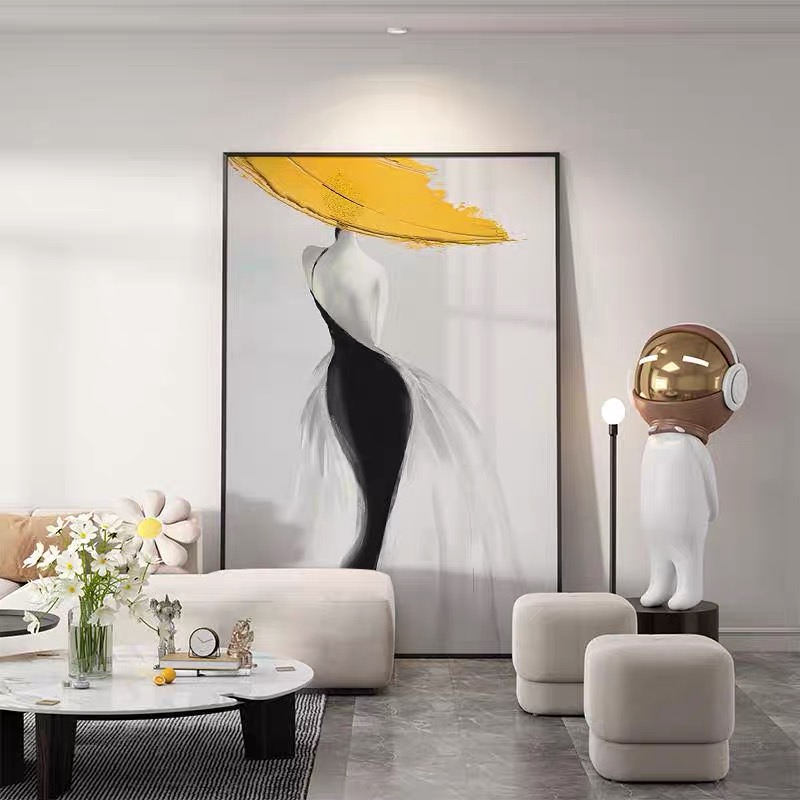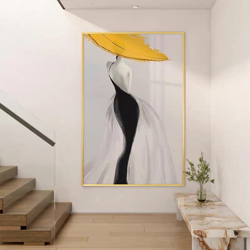 Modern Sexy Woman Yellow Hat Handmade Canvas Oil Painting Abstract Nordic Luxury Artwork Posters Living Room Canvas Wall Aesthetic Home Decor