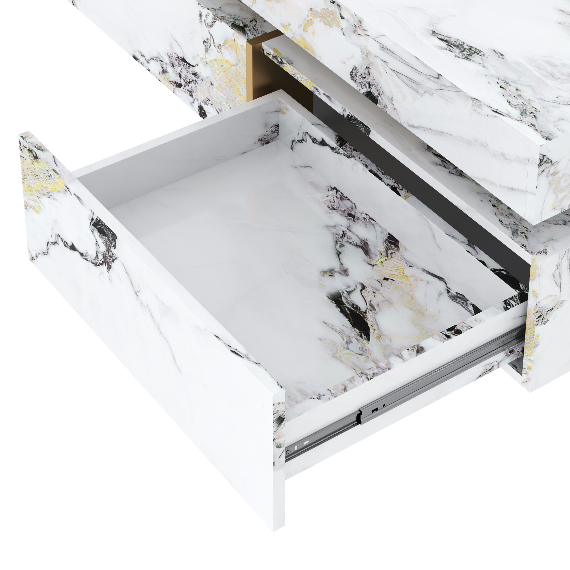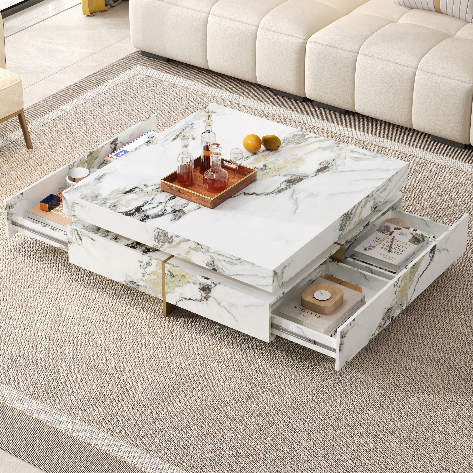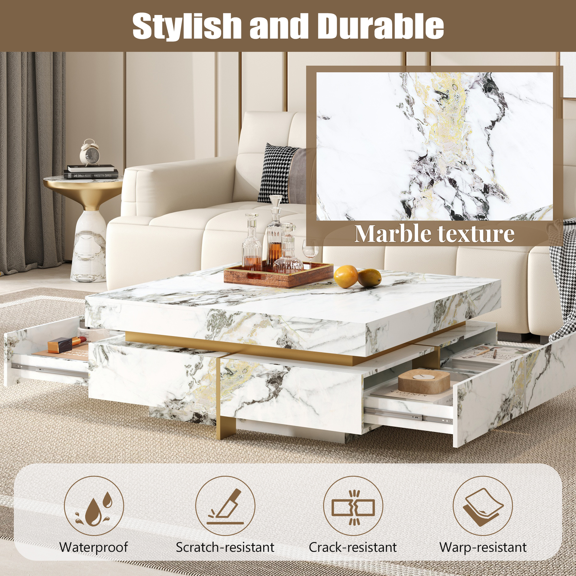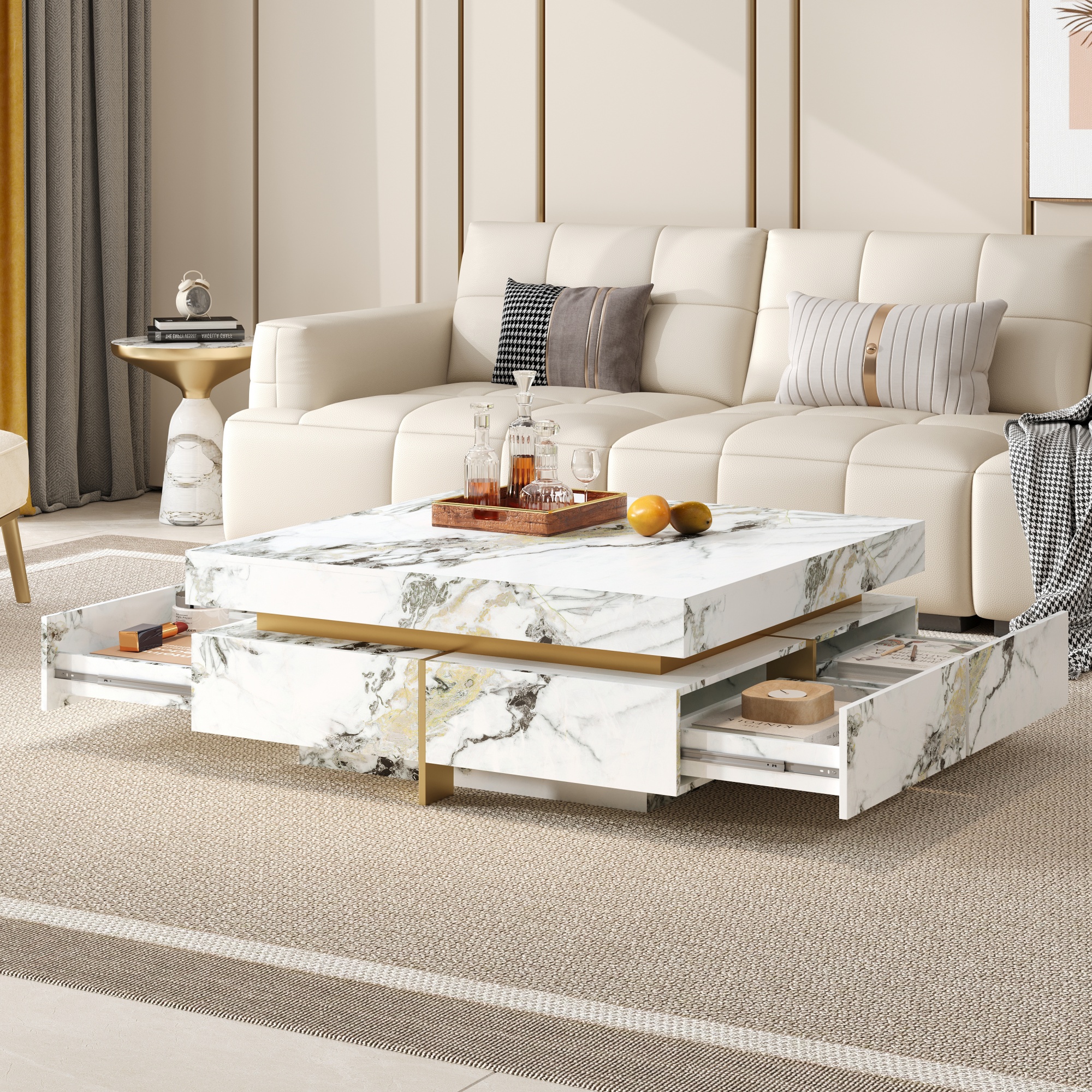 Product Name:Modern Square Marble Textured Coffee table with 4 Drawers and Suspended Base, White, 43.3"