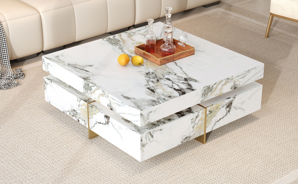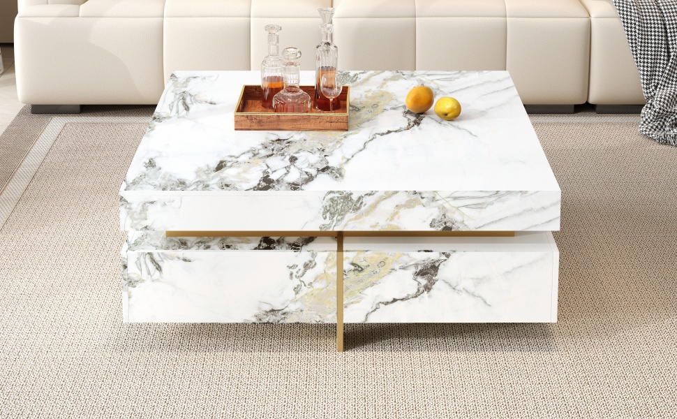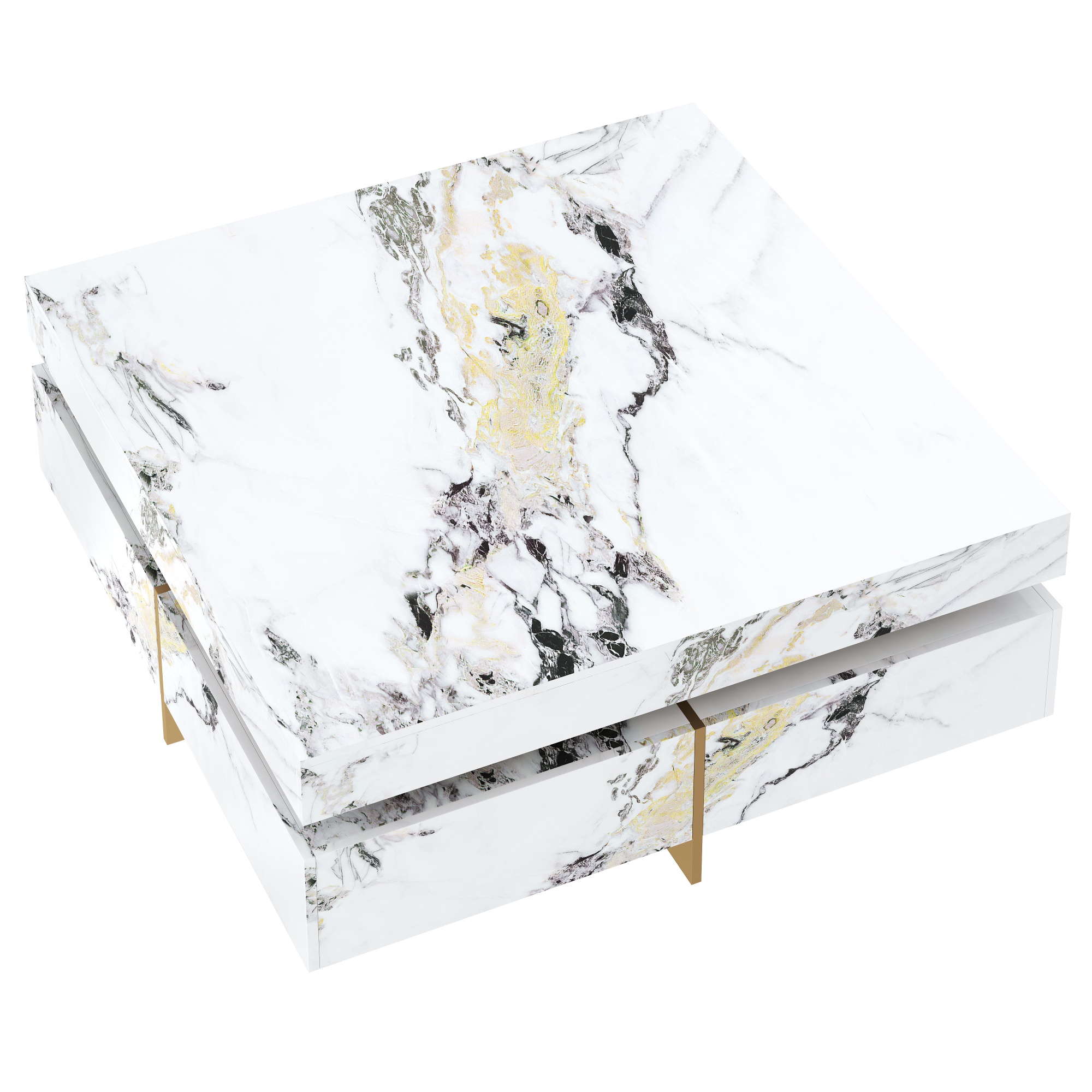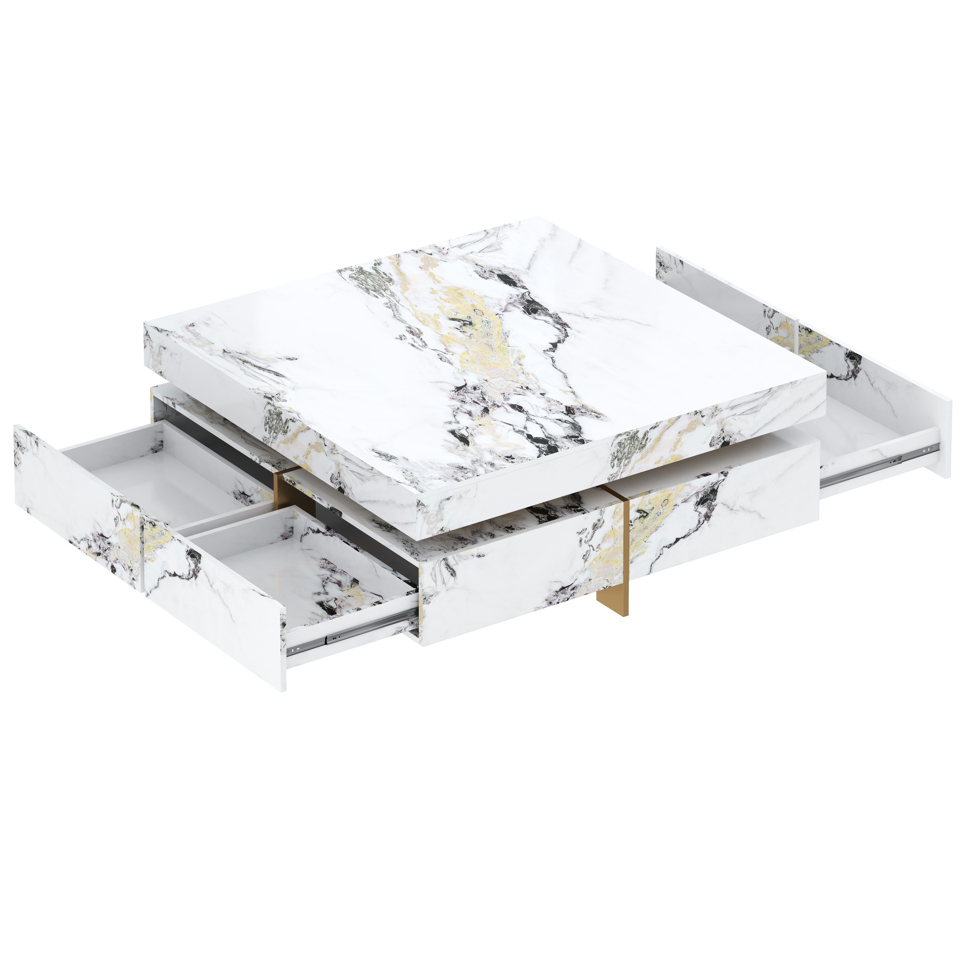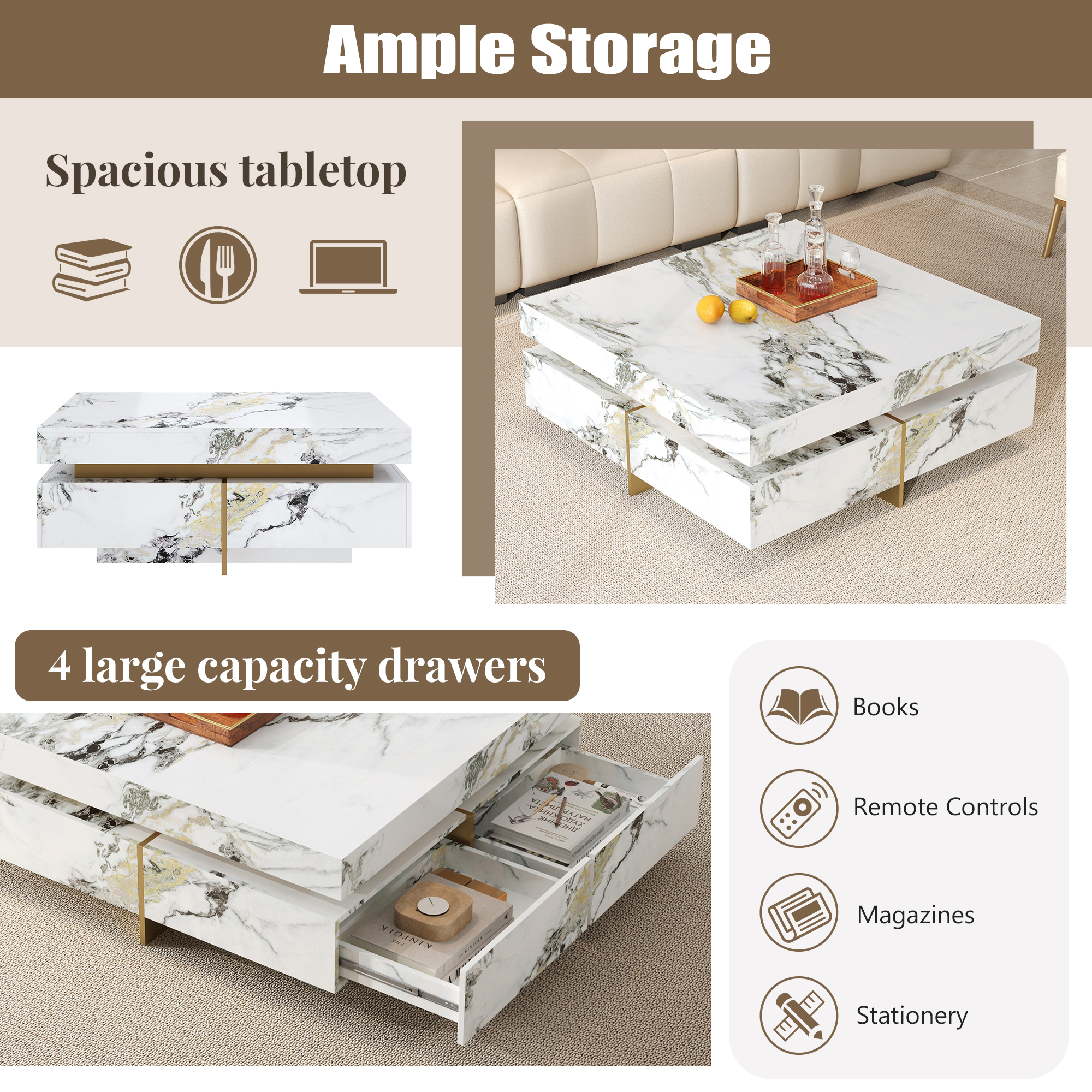 Product Name:Modern Square Marble Textured Coffee table with 4 Drawers and Suspended Base, White, 43.3"