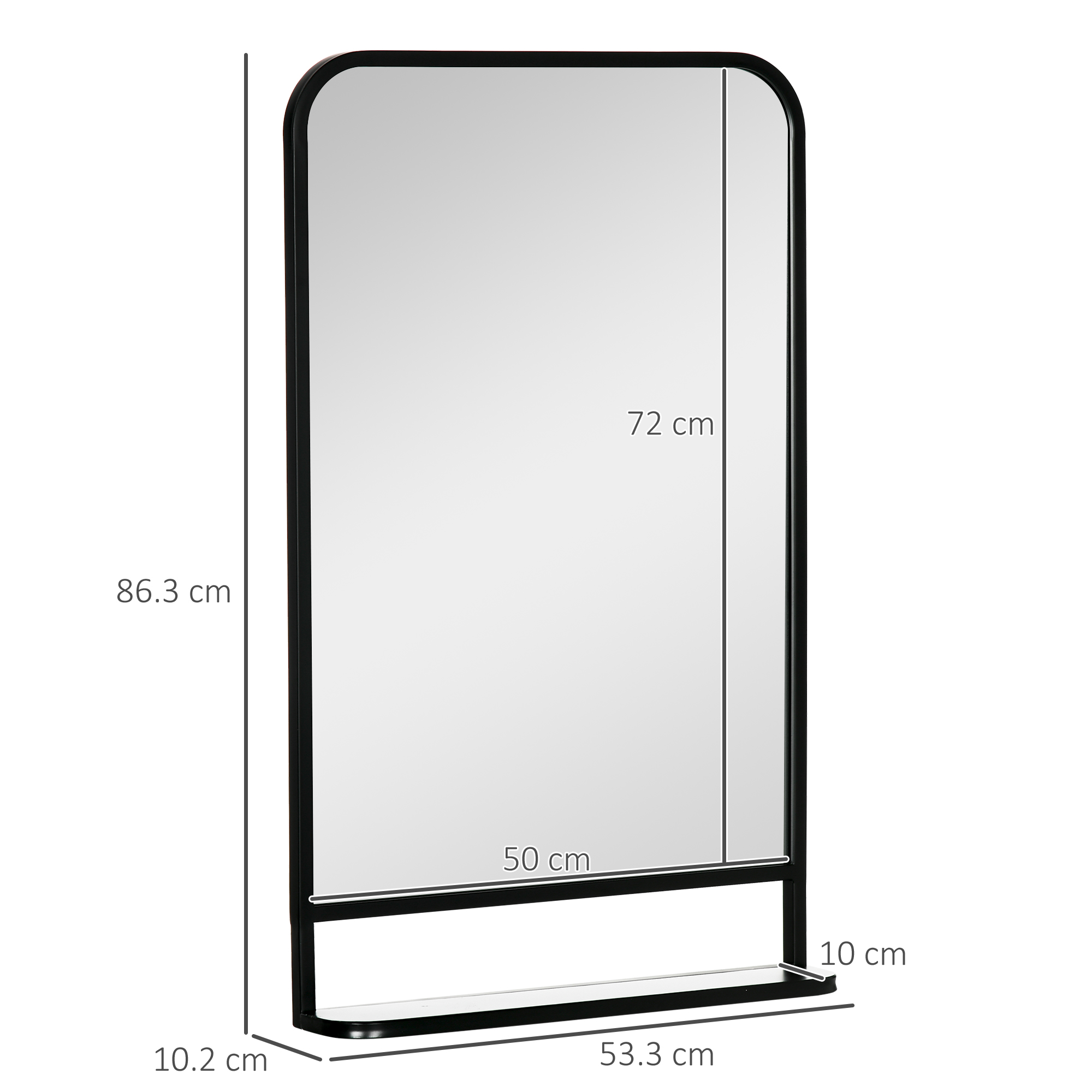 A must-have home accessory doesn't come much simpler than this bedroom mirror. Take its gently curved shape and black frame - a design which can be fixed practically anywhere; it won't clash against your current interior. The 70x50cm size is great for placing above your hallway table, keeping in the bathroom or fixing in the corner of the bedroom. It comers with a bottom shelf for a handy holding spot. Hooks moulded on the back to hang on the chosen wall easily.