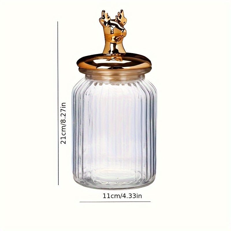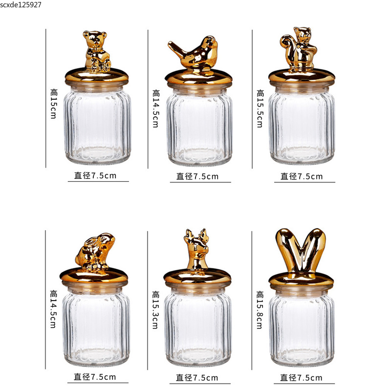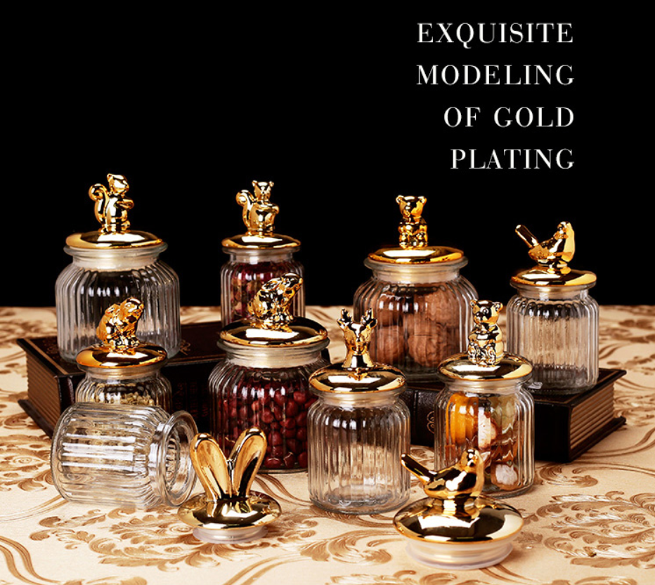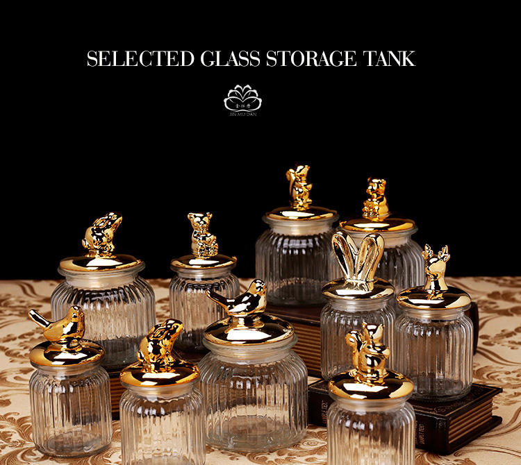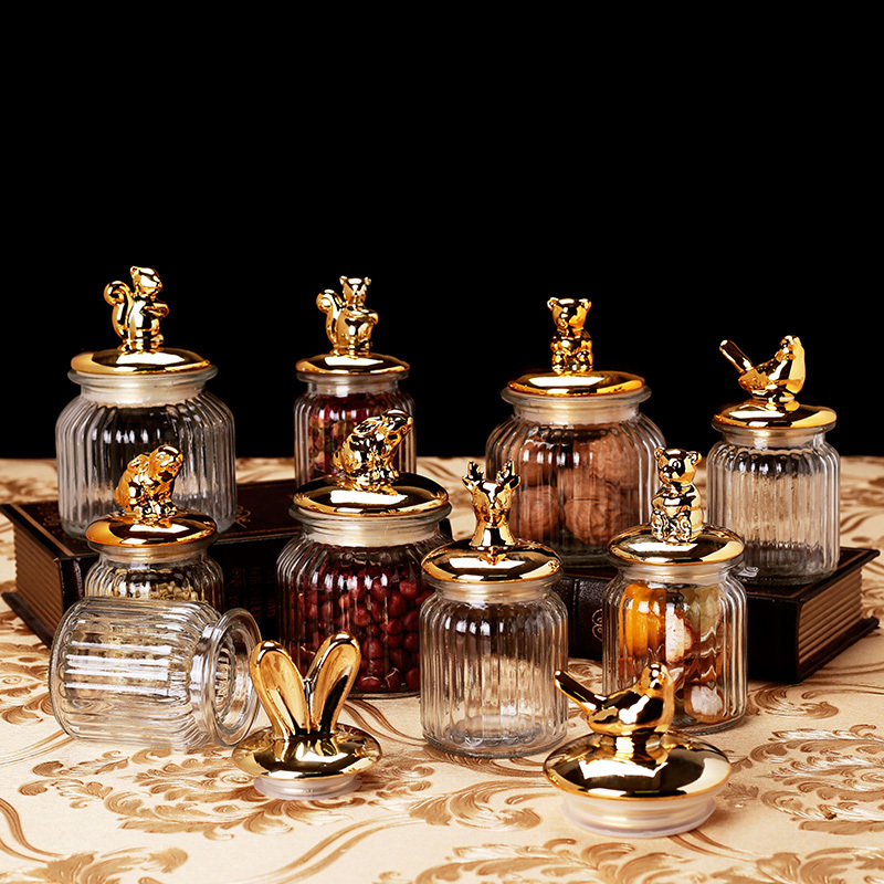 Modern Transparent Glass Sealed Jar Storage With Lid Golden Animal Decoration Candy Bottle Tea Box Kitchen Utensils