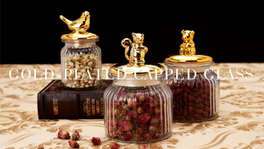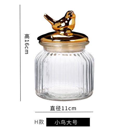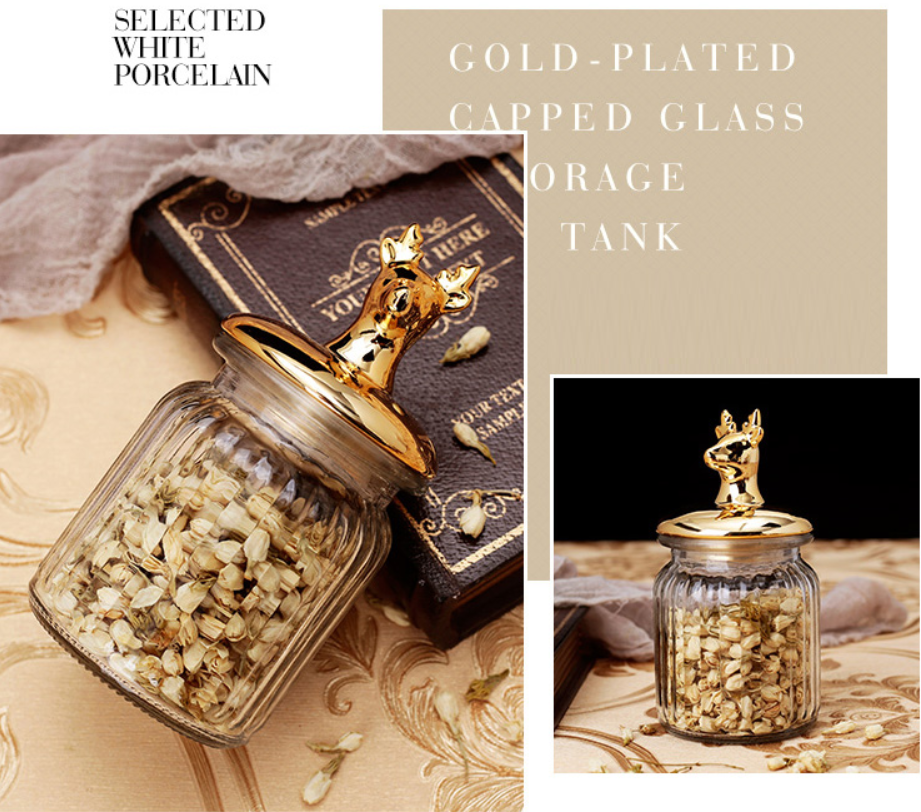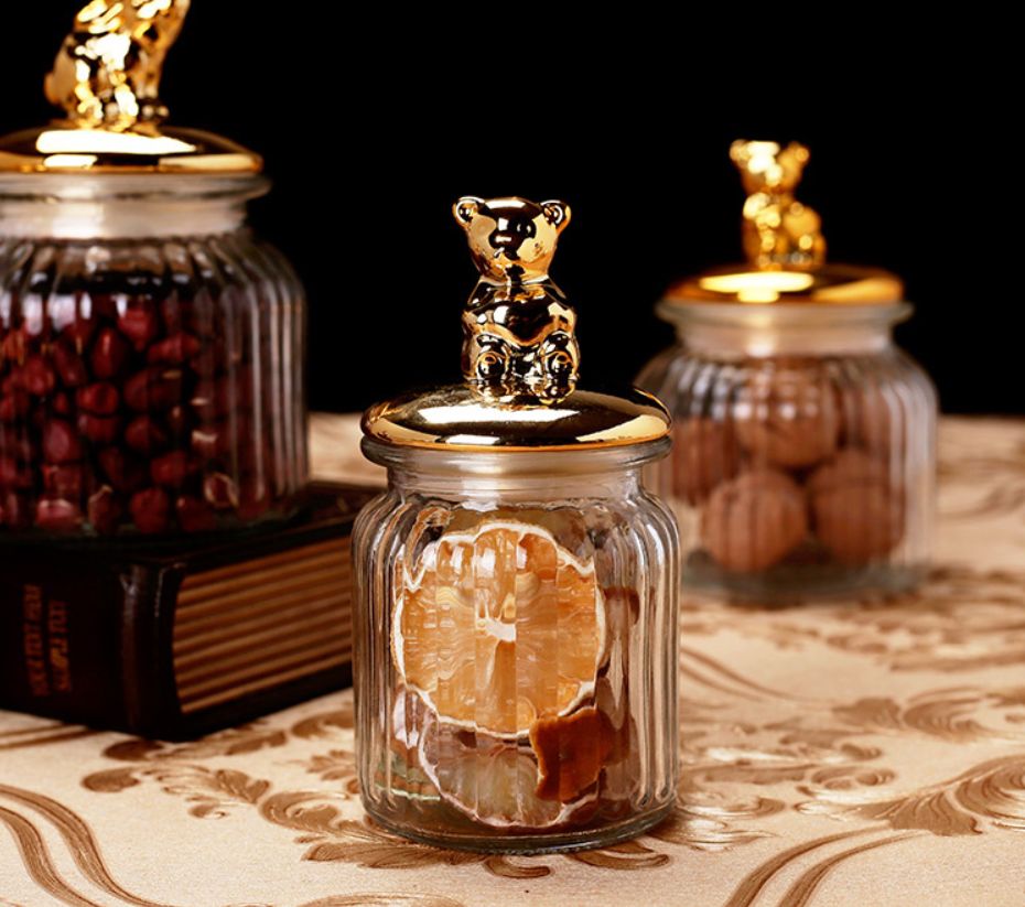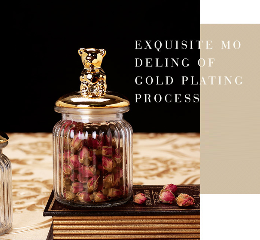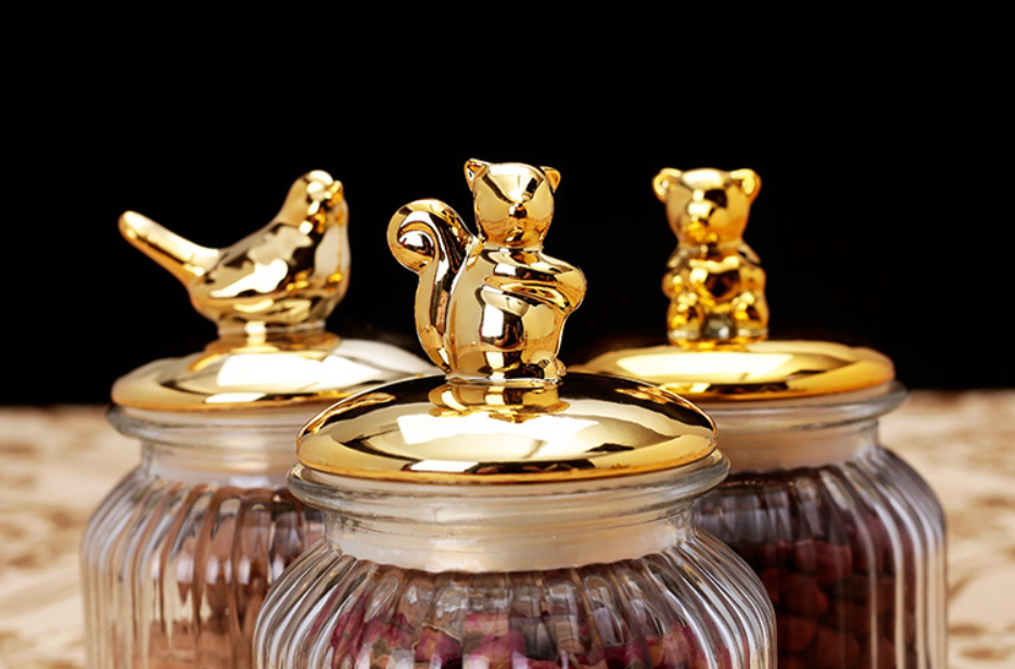 Modern Transparent Glass Sealed Jar Storage With Lid Golden Animal Decoration Candy Bottle Tea Box Kitchen Utensils