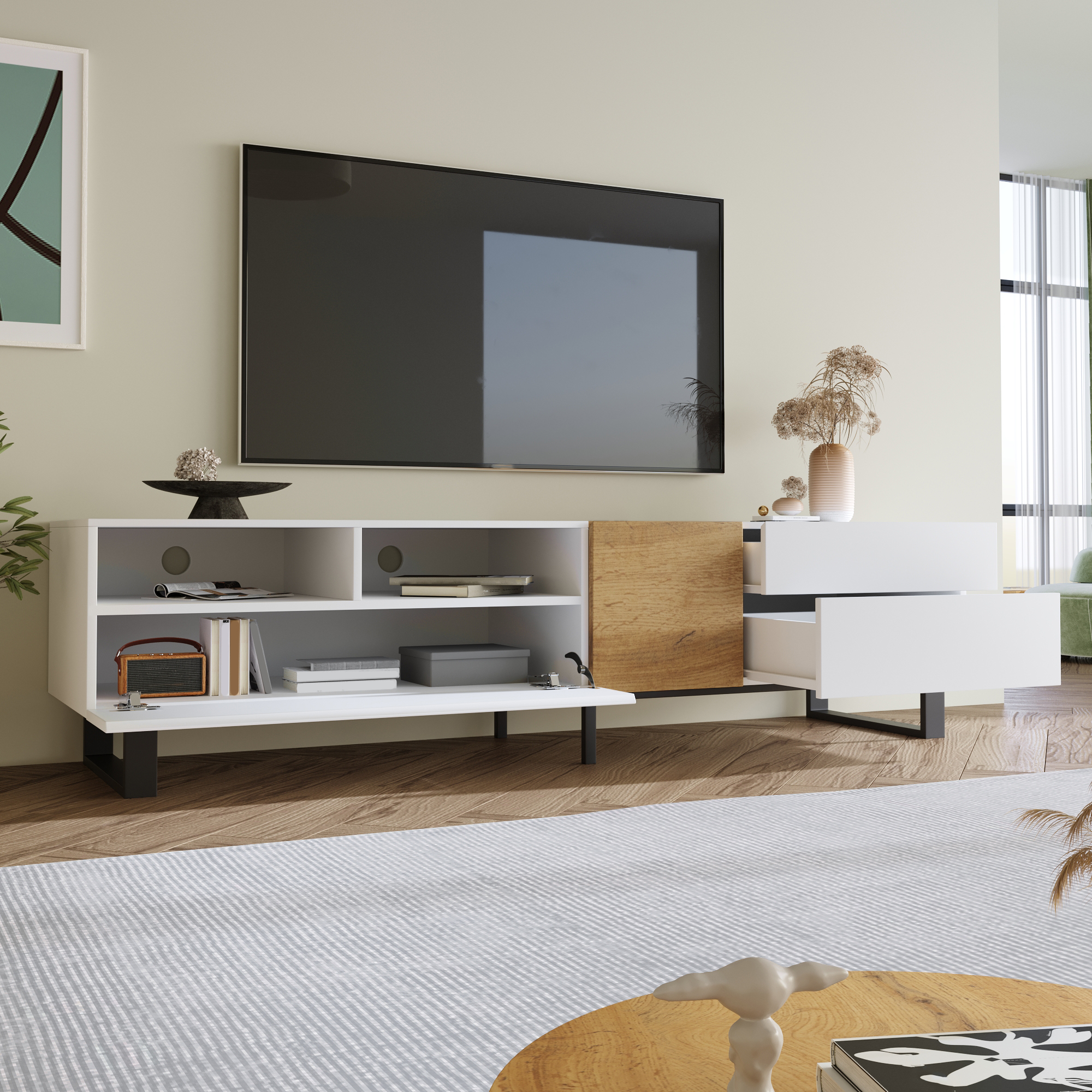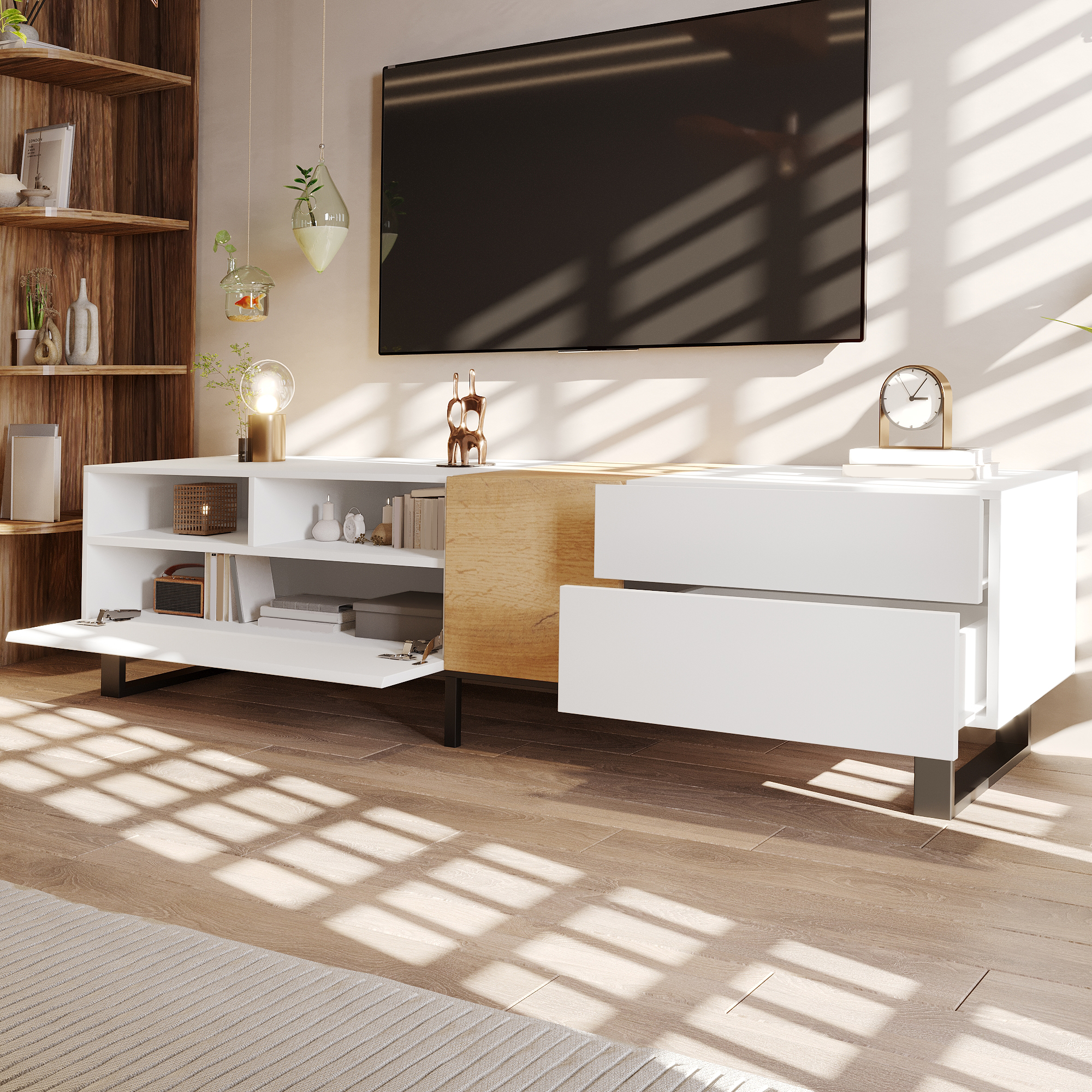 Product Name:Modern TV Cabinet, White and Wood Look, 180 x 50 x 38 cm, Minimalist Design