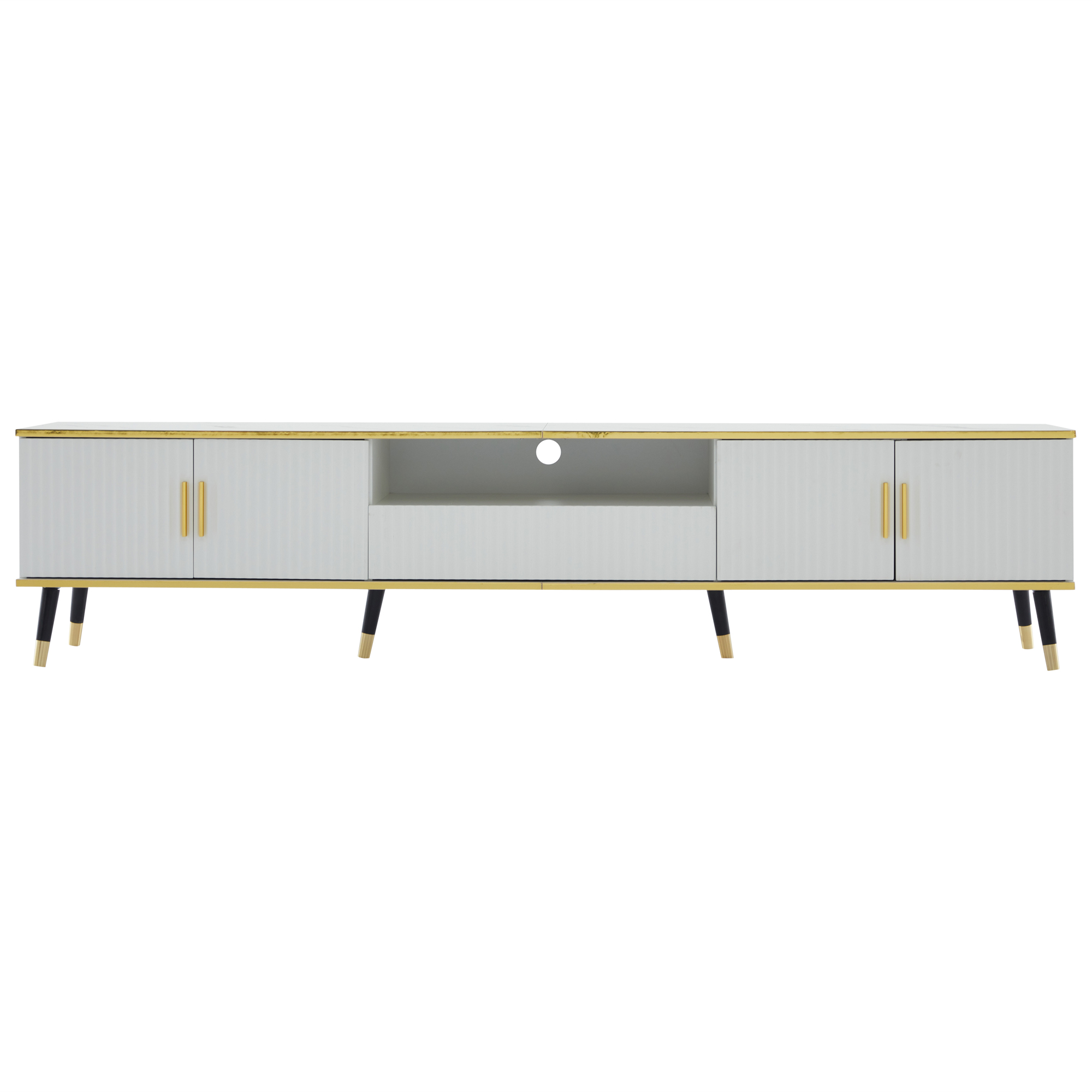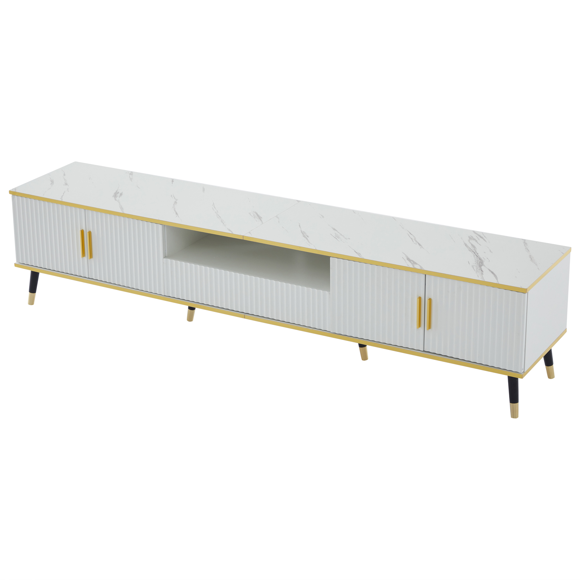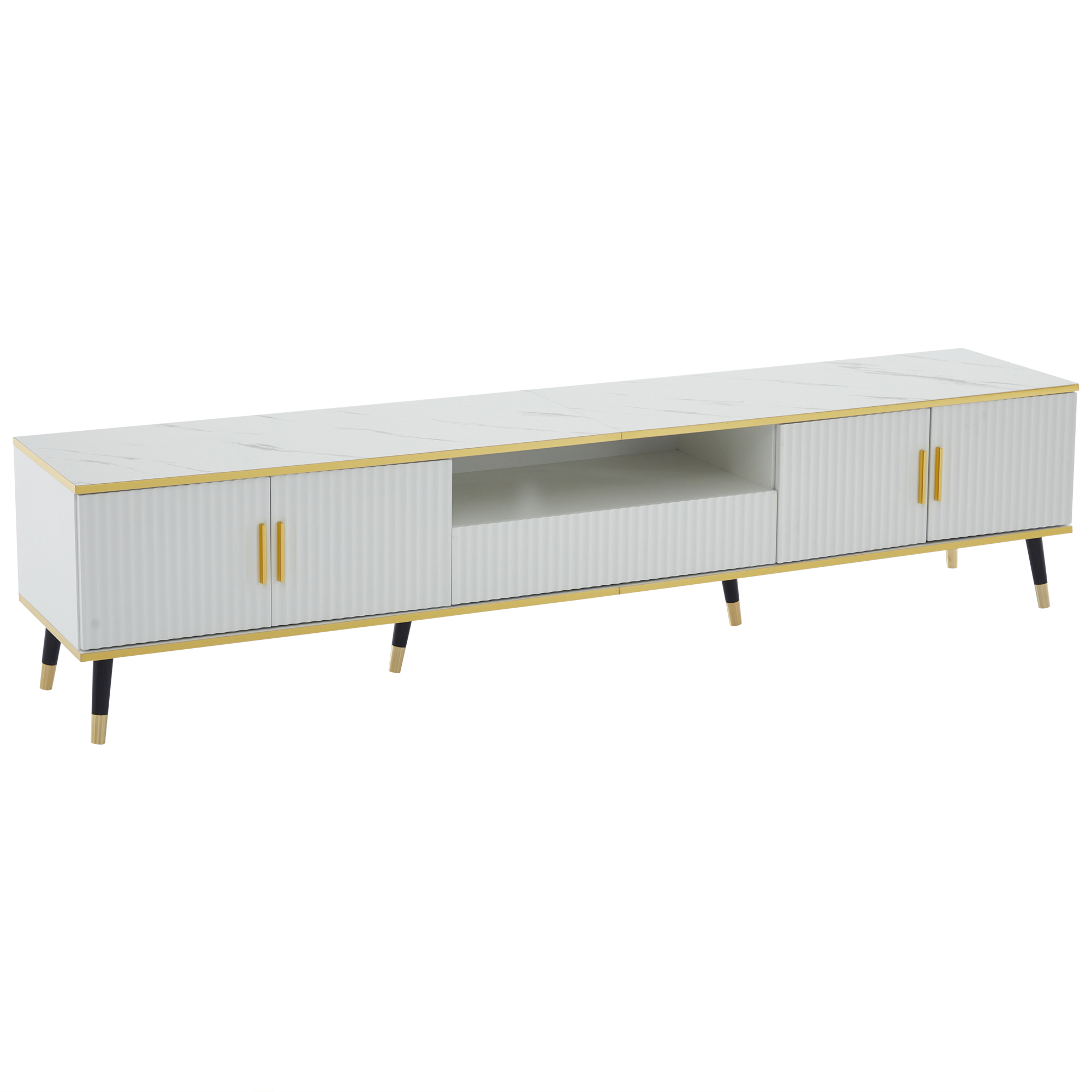 Product Name:Modern TV Stand, 4doors & 1drawers, TV Cabinet Storage Sideboard with Marble texture, TV Entertainment center for livingroom bedroom, 200*40*46cm, White, maximum for 90 inch TV