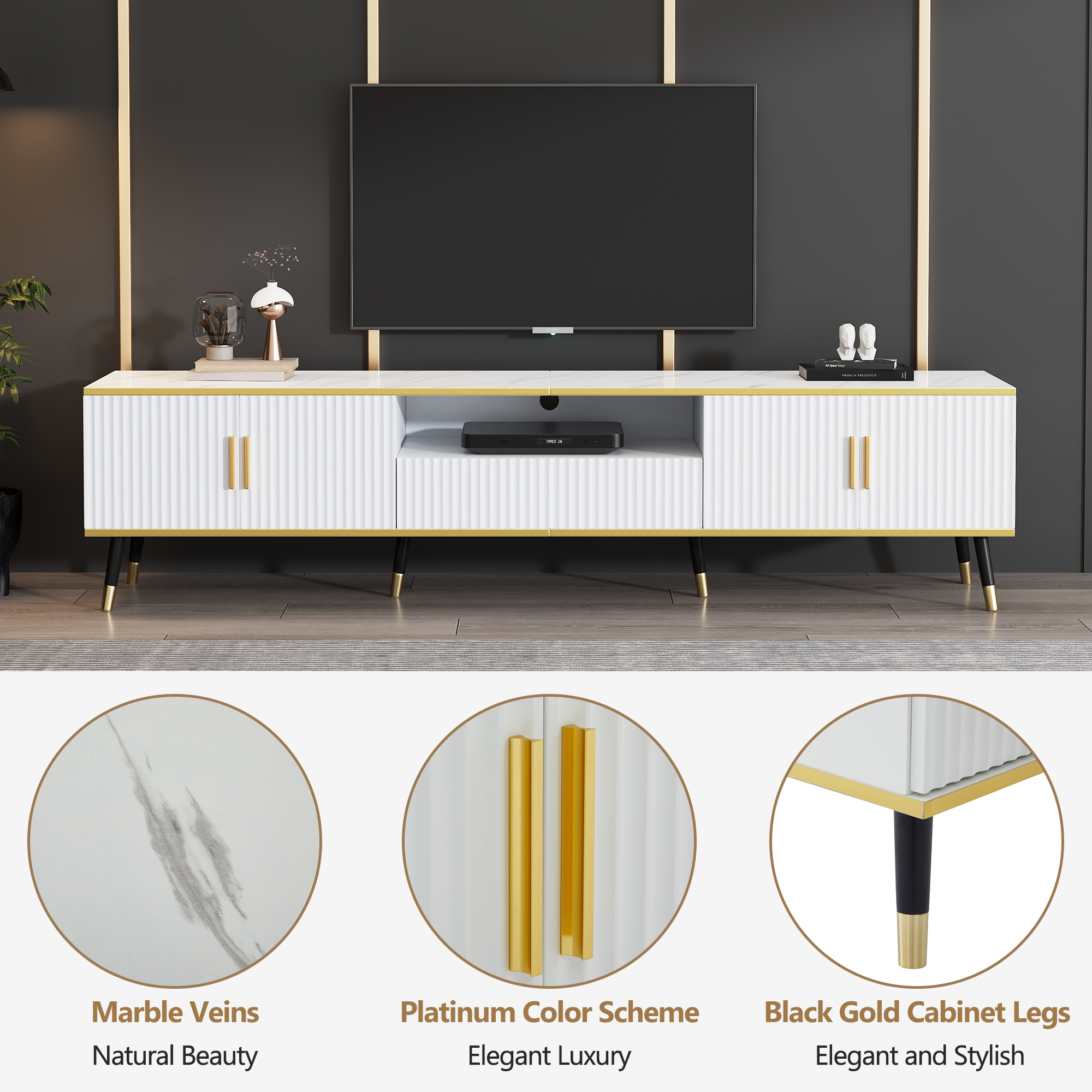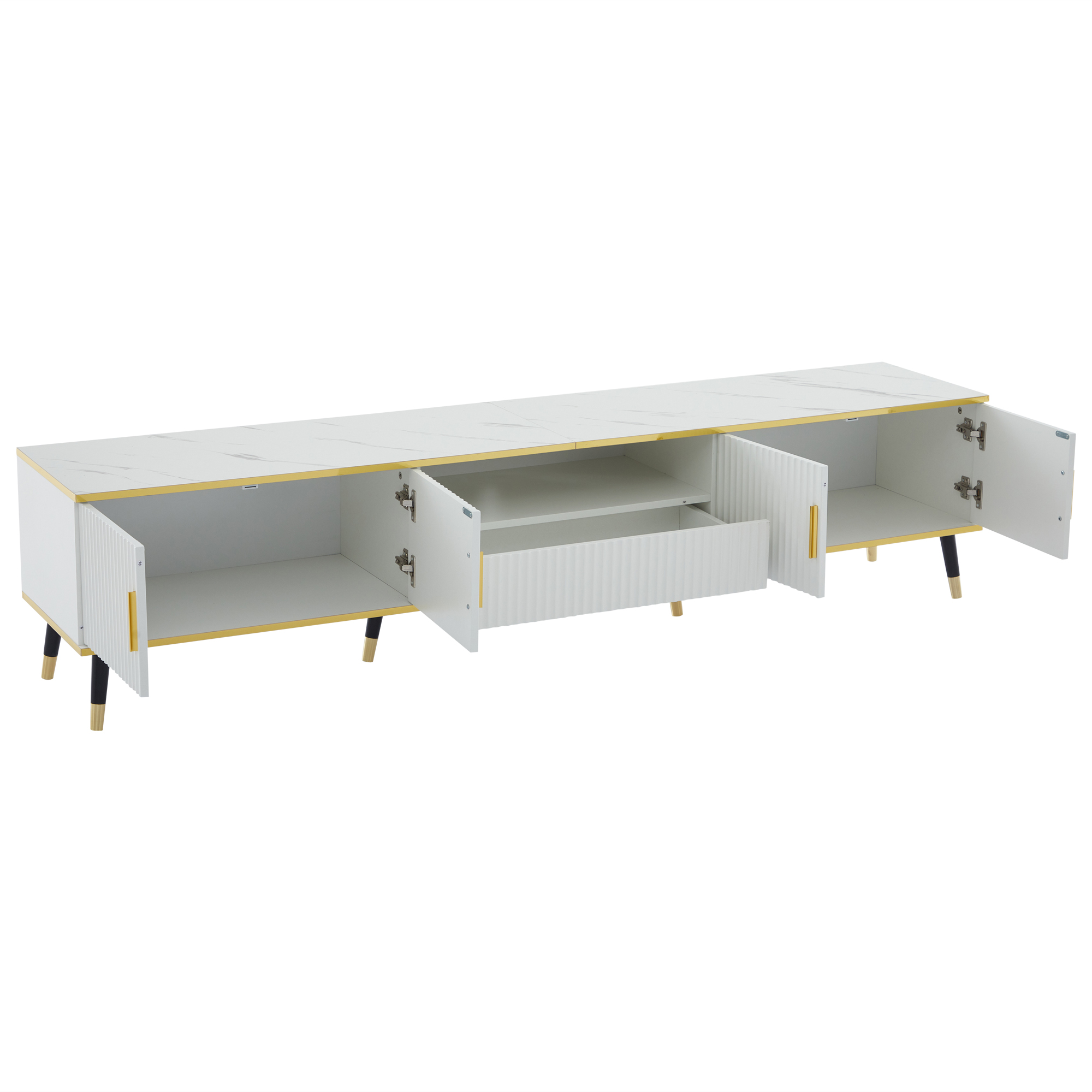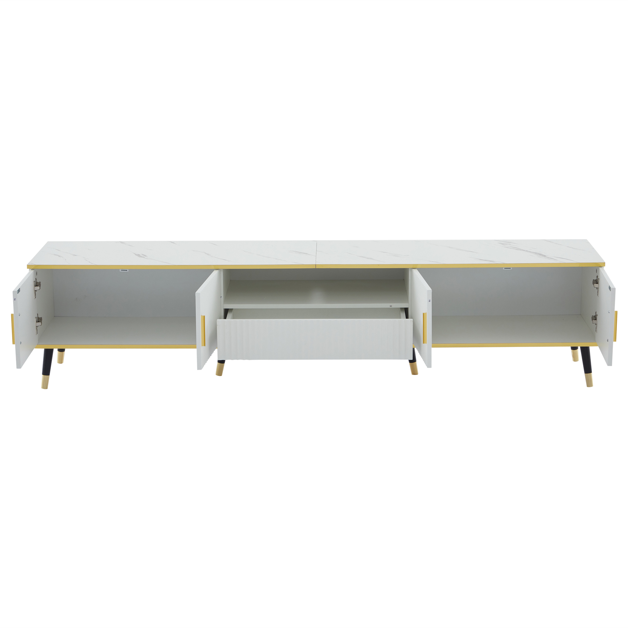 Product Name:Modern TV Stand, 4doors & 1drawers, TV Cabinet Storage Sideboard with Marble texture, TV Entertainment center for livingroom bedroom, 200*40*46cm, White, maximum for 90 inch TV