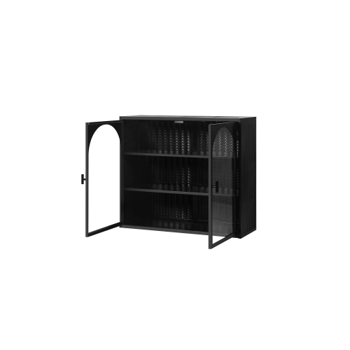 27.56" Glass Door Modern Two Door Wall Cabinet with Three Levels of Storage for Entrance, Living Room, Bathroom, Dining Room, Wall Cabinet with Characteristic Woven Pattern, Black
