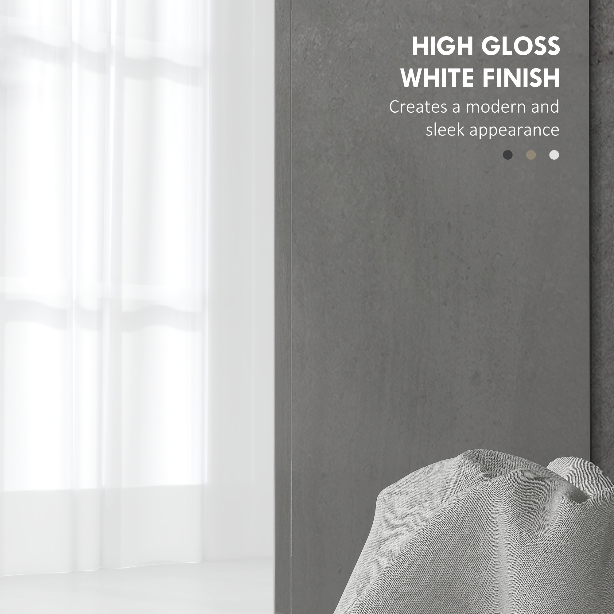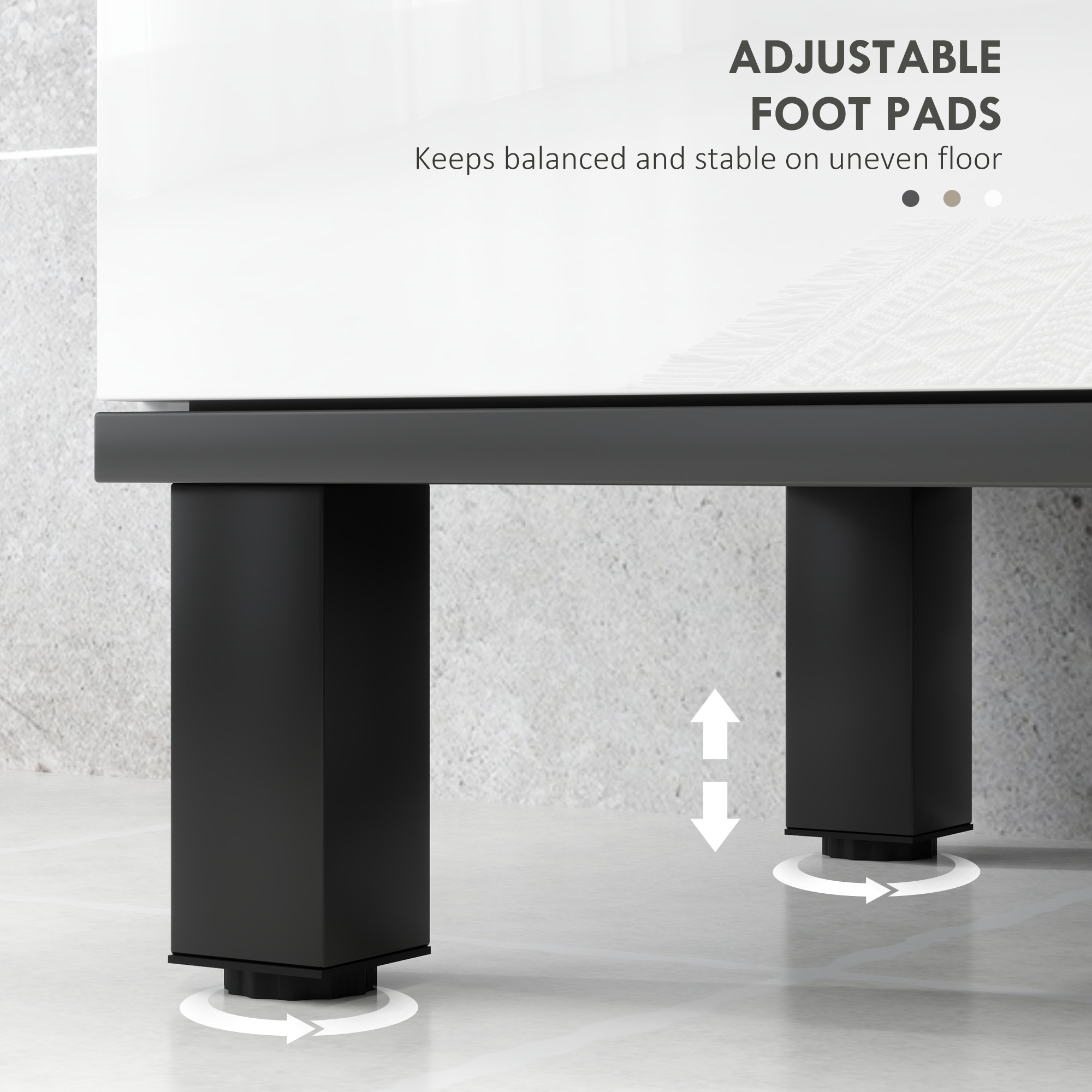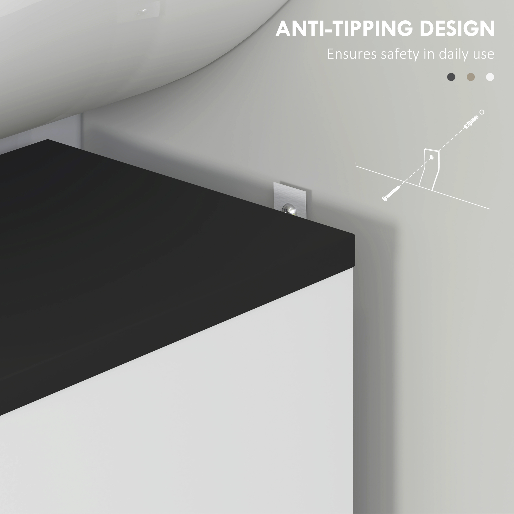 Maximise storage space with this bathroom sink cabinet. It has a 20 x 23 cm 'U' cut-out to fit under pedestal and non-pedestal basins. This under sink unit features an inner three-level adjustable shelf - plenty of room for bathroom essentials. Its high gloss white finish with a contrasting dark grey tabletop, black legs and handles adds a modern touch to every bathroom.