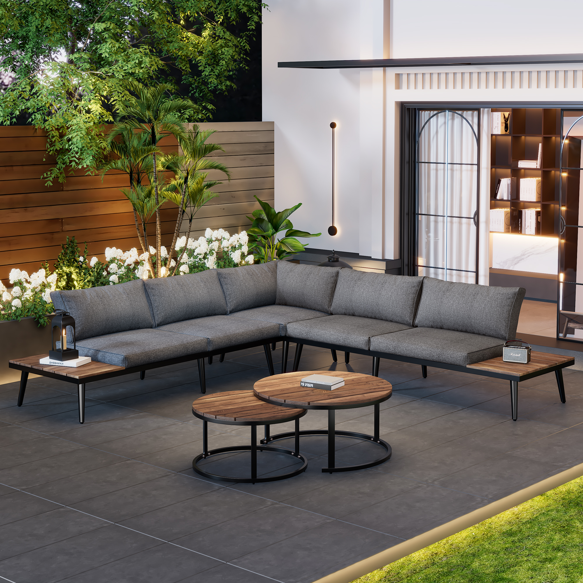 Product Name:Modular Outdoor Sofa Set with Galvanized Iron Frame, Washable Cushions, Acacia Wood Nesting Tables, for Patio & Garden