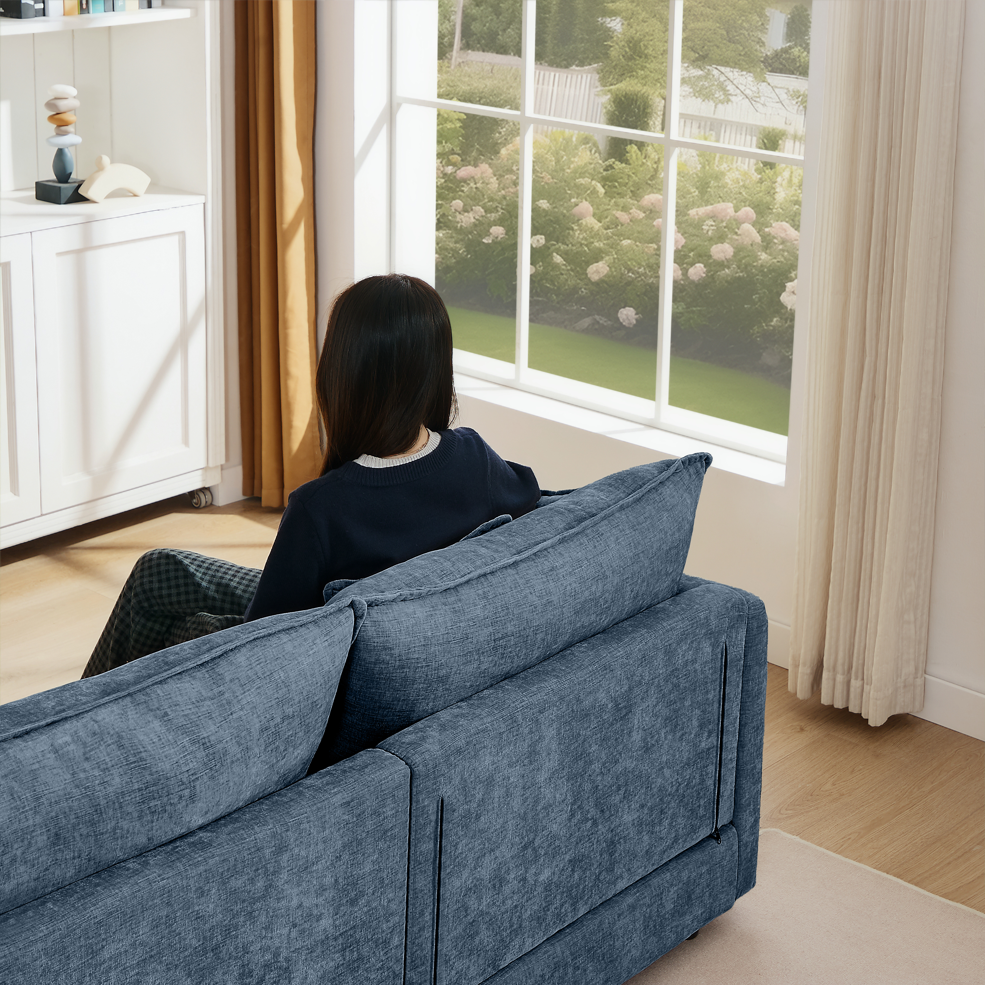 Elevate your living space with our modern L-shaped modular sofa, featuring a freely movable footrest that adapts effortlessly to any home layout, whether spacious or compact. The seat cushions combine robust spring packs and high-resilience foam for exceptional support and a cloud-like sitting experience that gently contours to your body and relieves pressure. Upholstered in premium chenille fabric, the sofa offers lasting beauty, soft texture, and excellent durability, while its easy-care nature makes it perfect for busy lifestyles. More than just seating, this versatile design is a statement of refined taste, blending innovative flexibility, luxurious comfort, and timeless elegance to create a warm and stylish home environment.