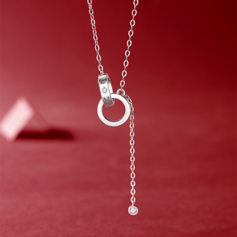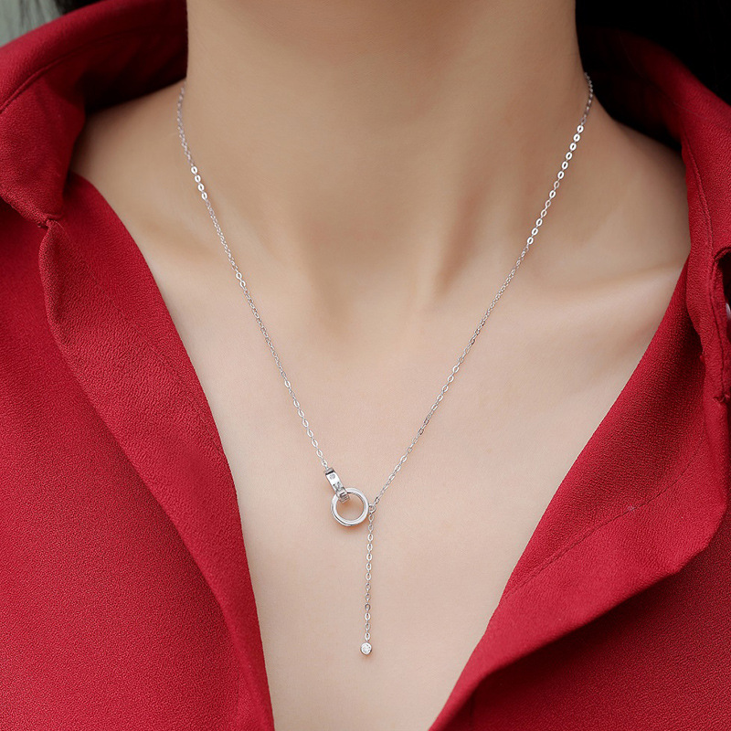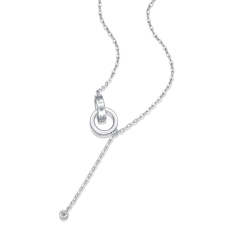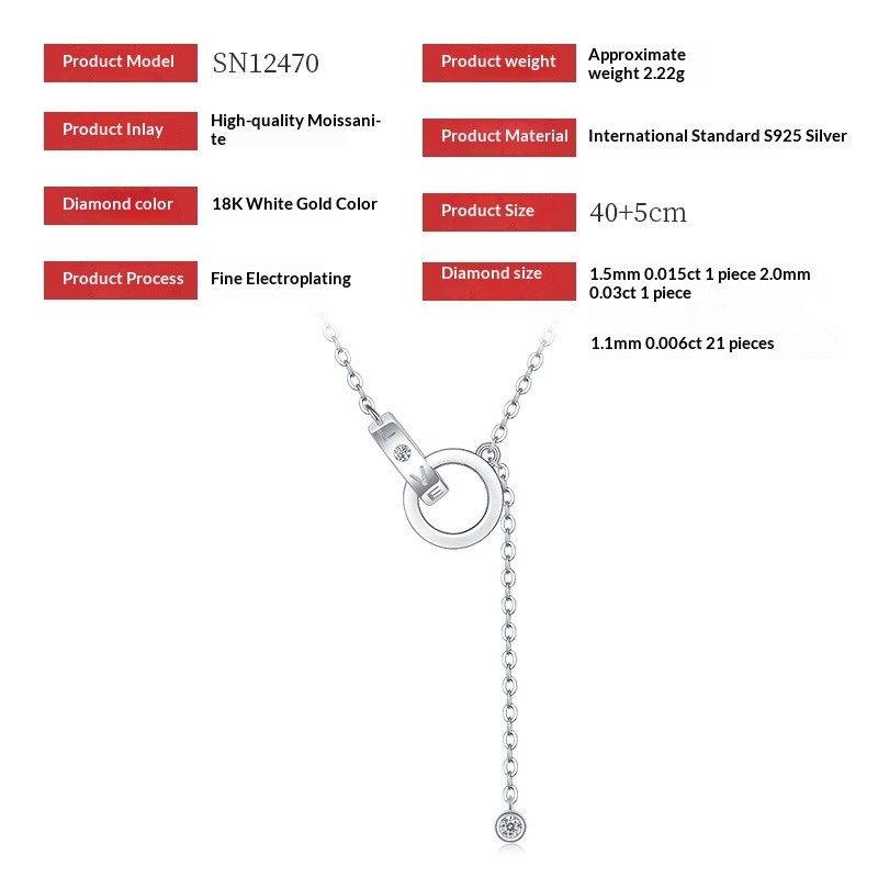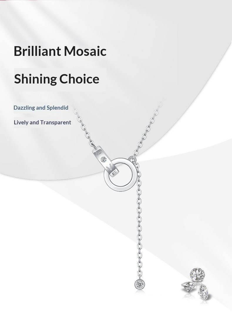 Color: 2mm Linked-Loop Tassel Moissanite Necklace, 2mm Linked-Loop Tassel Moissanite Necklace (Includes Certificate + Gift Box)