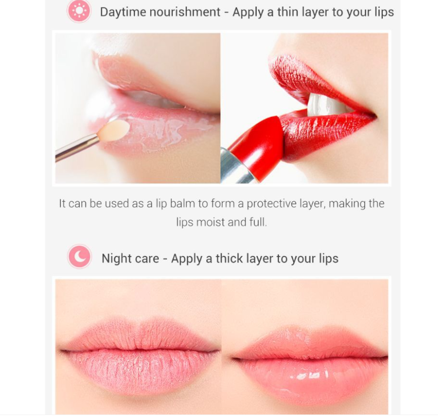 Contains natural rose extract, super moisturizing, can improve the dull skin of the lips, make the dead skin cuticles on the lips come off, reduce lip lines, moisturize the color of the lips, repair the lips during sleep.